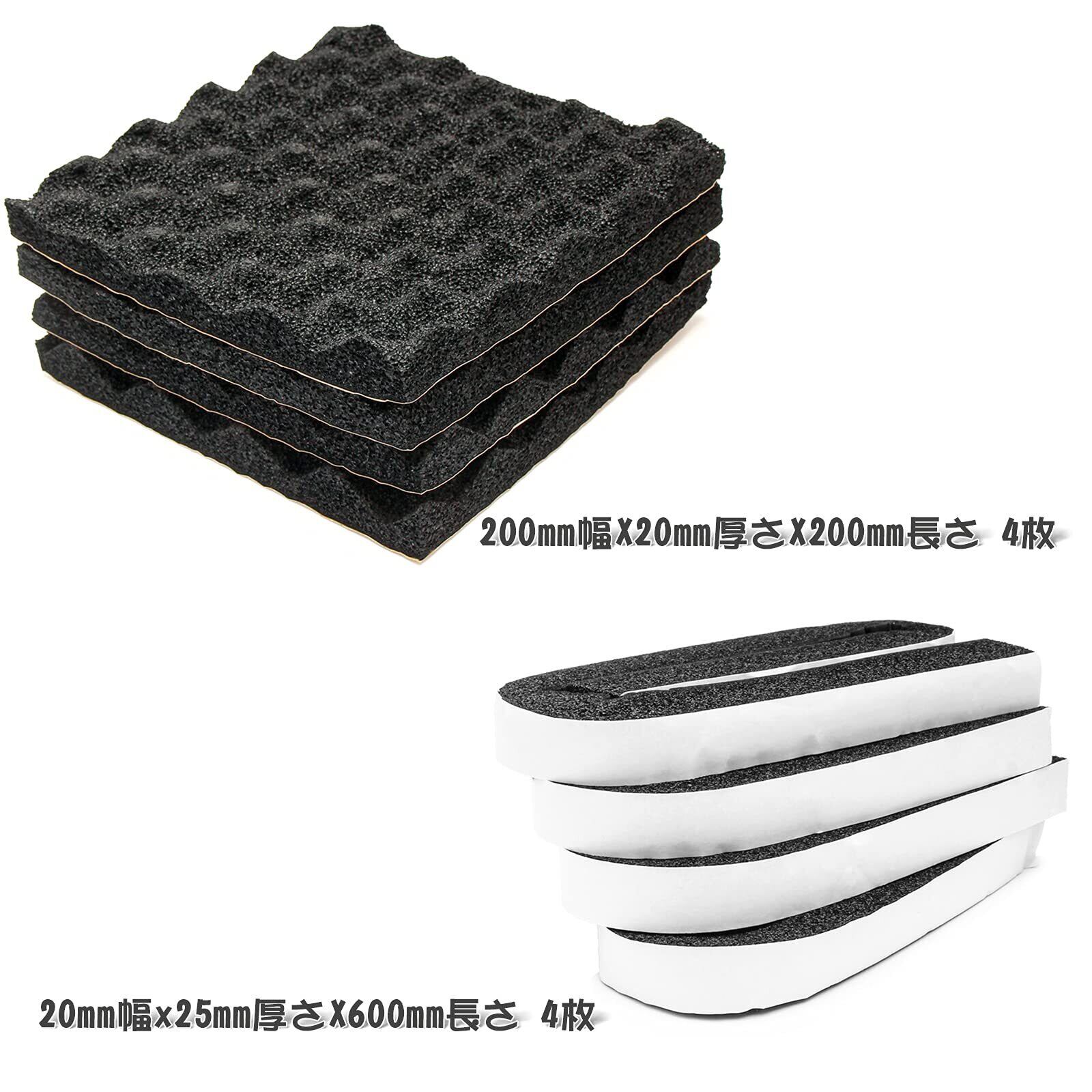 スピーカー背面吸音材(200mm 幅 x 20mm 厚さ x 200mm 長さ)4枚 防音テープ (20mm 幅 x 25mm 厚さ x 600mm 長さ)4枚 合計8枚セット デッドニング マイク置き 粘着付