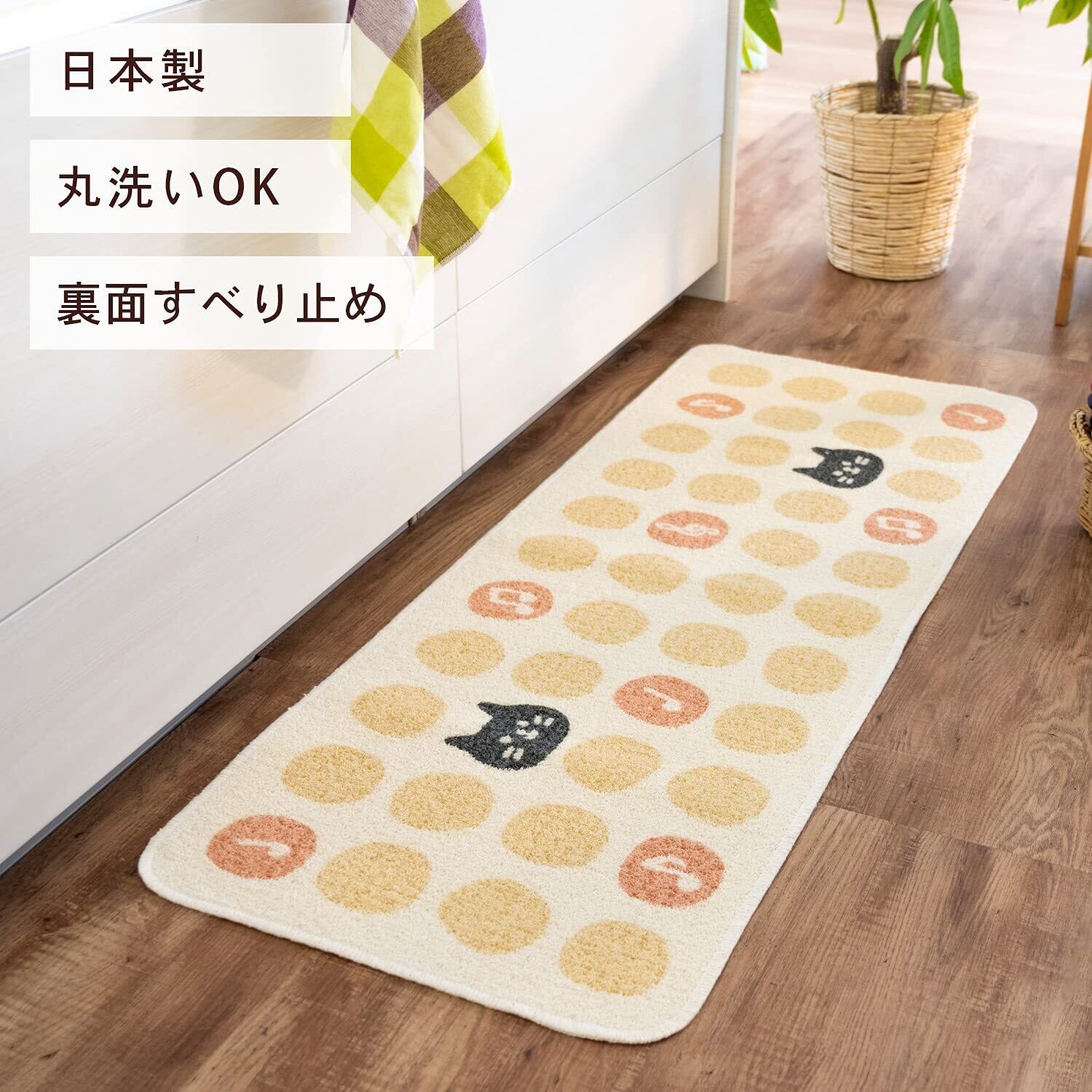 オカ(OKA) リズムキャット キッチンマット 約45cm×120cm ピンク (台所マット 日本製 すべり止め)