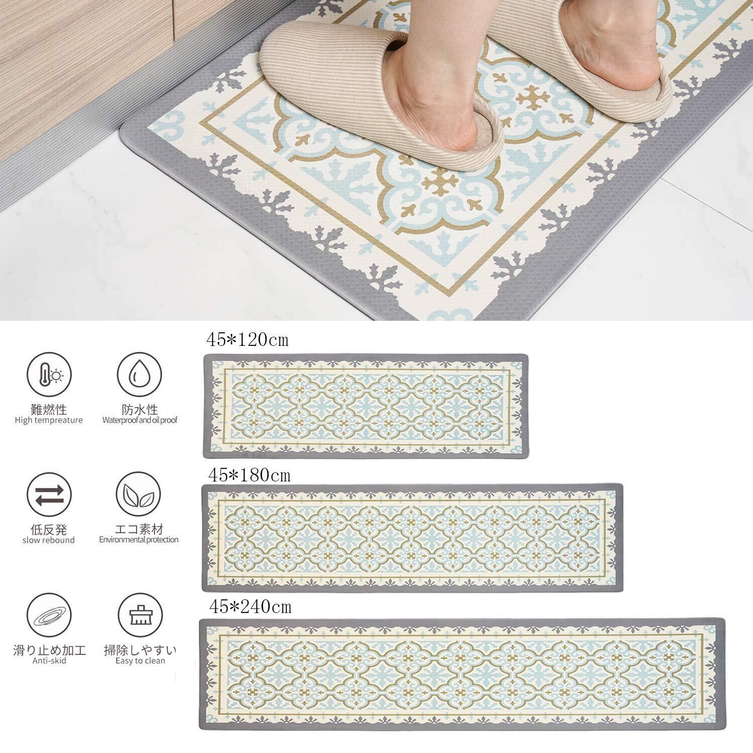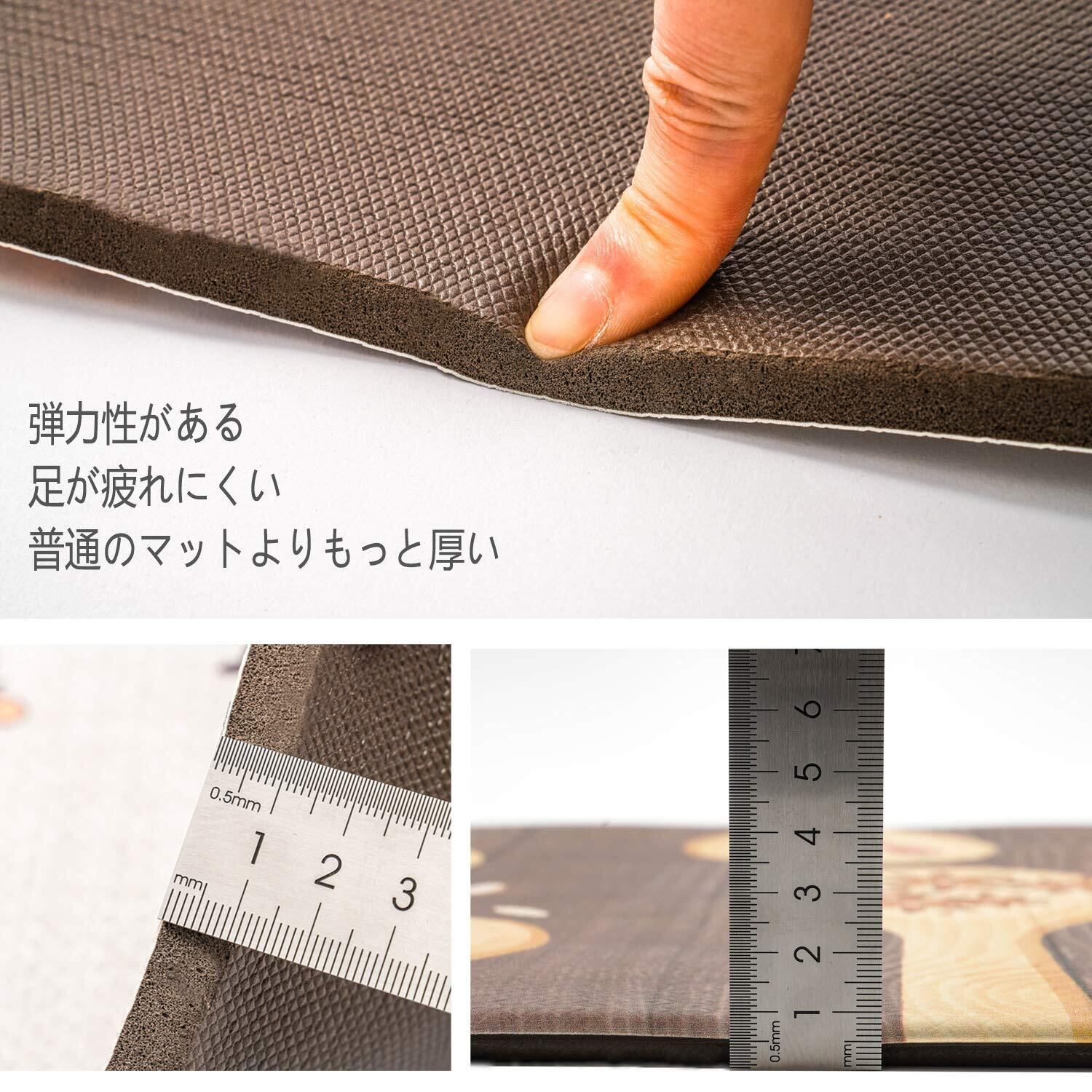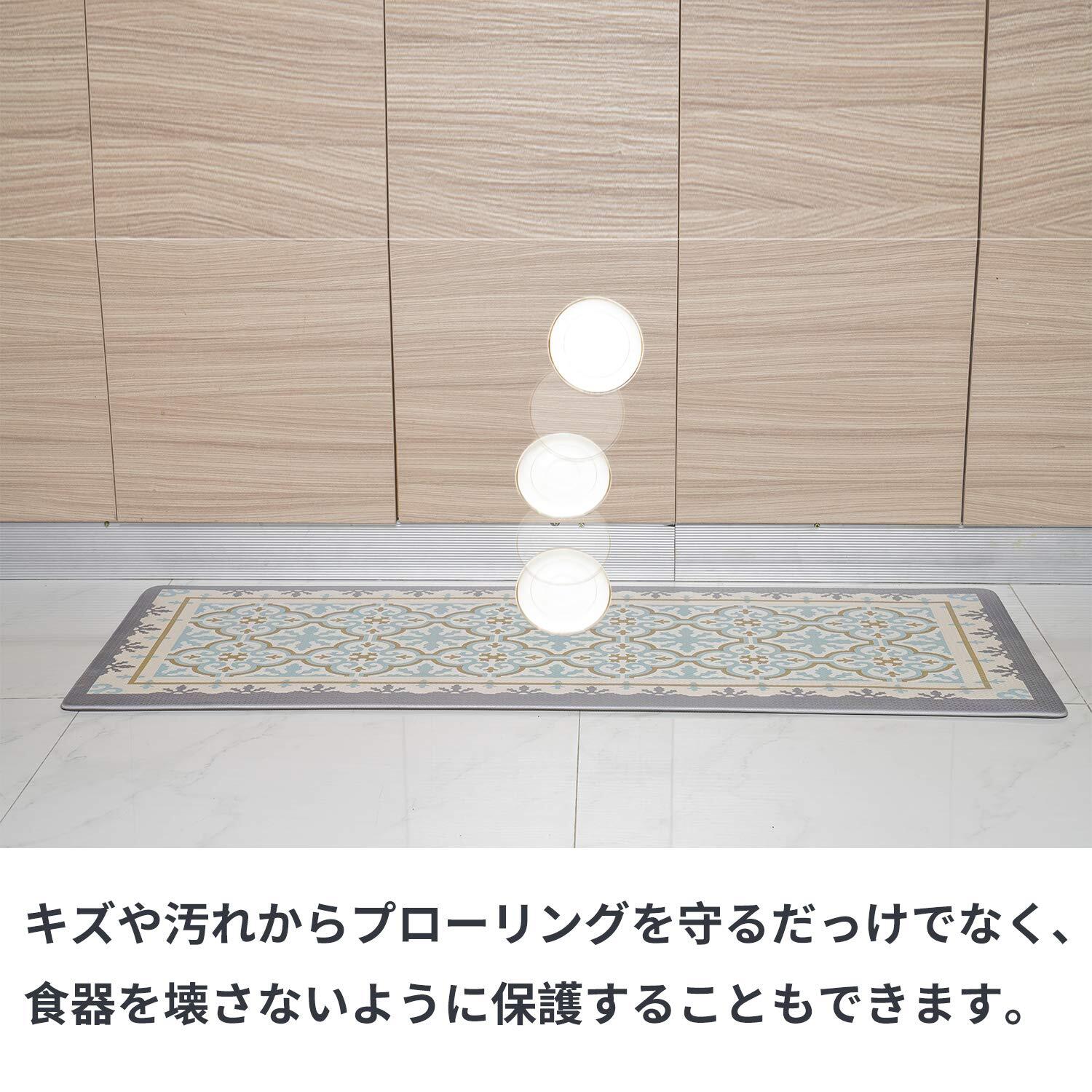 【厚いPVC】 足が疲れにく設計、もちもちの踏み心地でクッション性が高く台所マットです。長時間の立ち仕事も疲れにくい。このマットは素足でも、スリッパを履いたままでもいいです。物が落下しても衝撃を吸収し、床をキズやヘコミから守ります。
