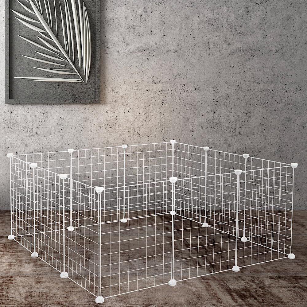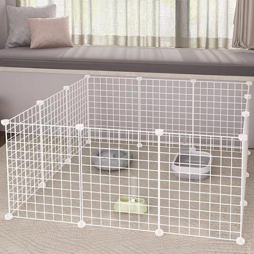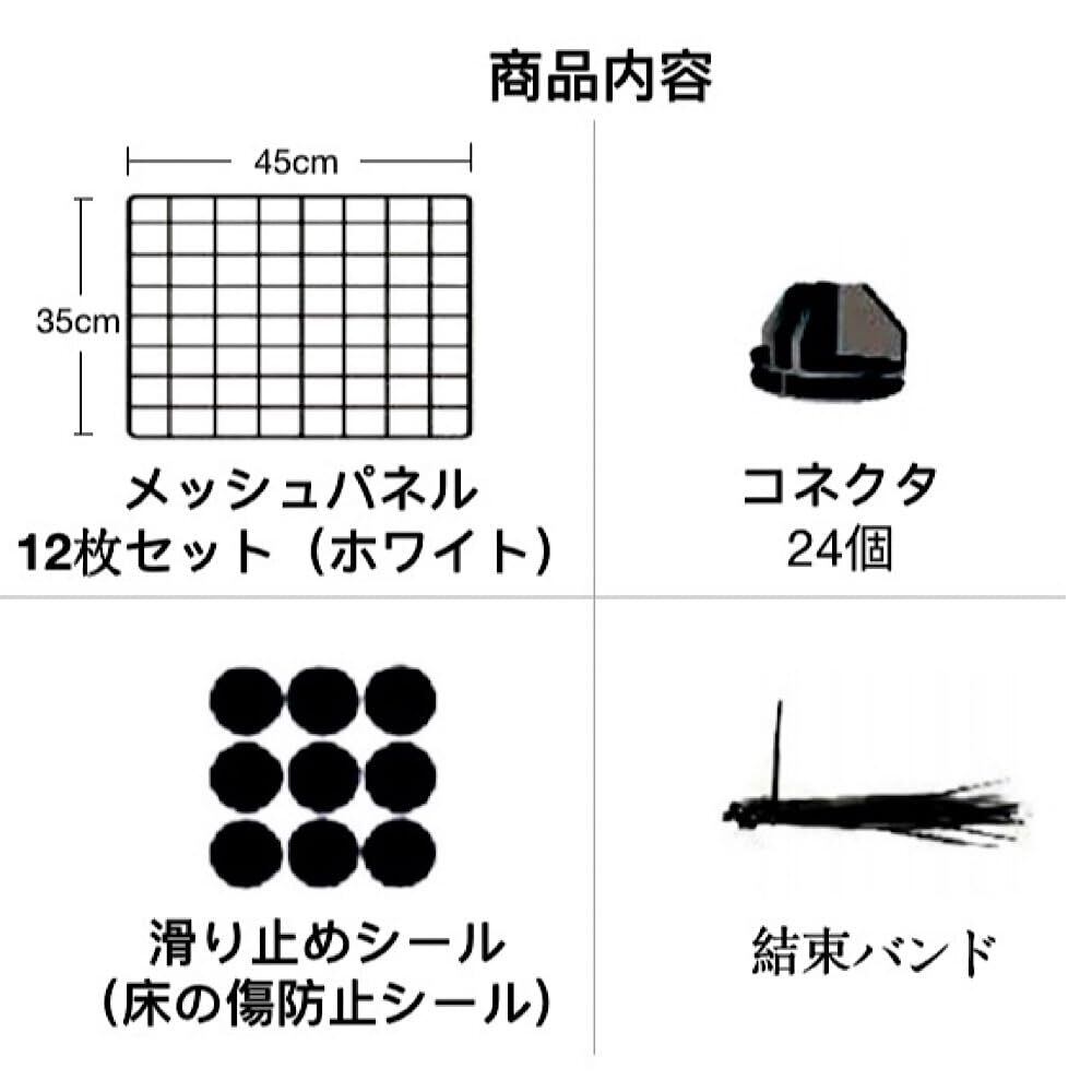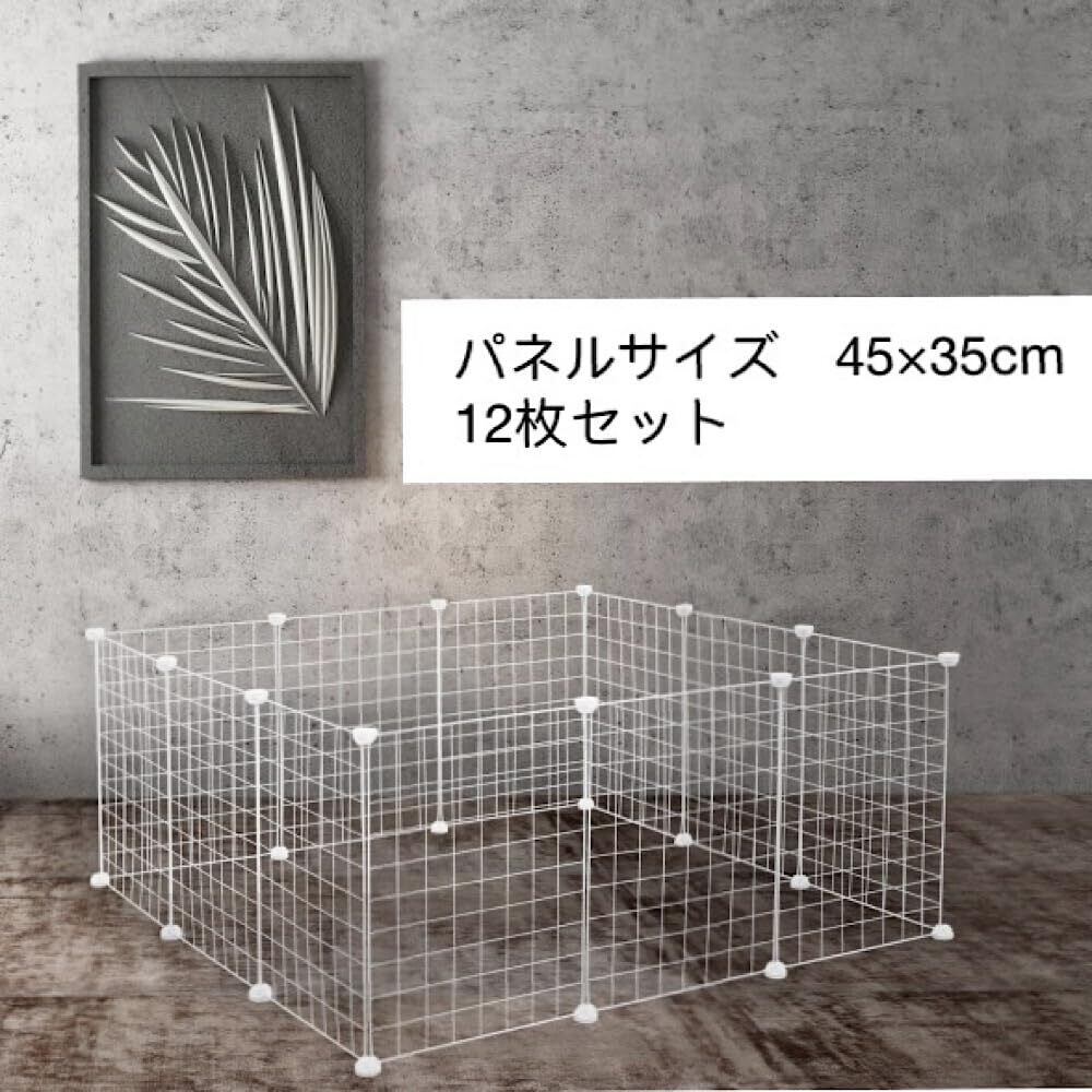 ENCOUNTER ペットフェンス ペットサークル ケージ 12枚セット 45×35cm 小型犬 小動物 犬 うさぎ ペット 室内用 透明 サークル 犬 室内 メッシュパネル ワイヤーサークル サークルフェンス ペットケージ 大きいサイズ レイアウト自由 ペット柵 脱出防止柵 多用途 組立簡単 ジョイント式 軽量 ホワイト 網目通常タイプ