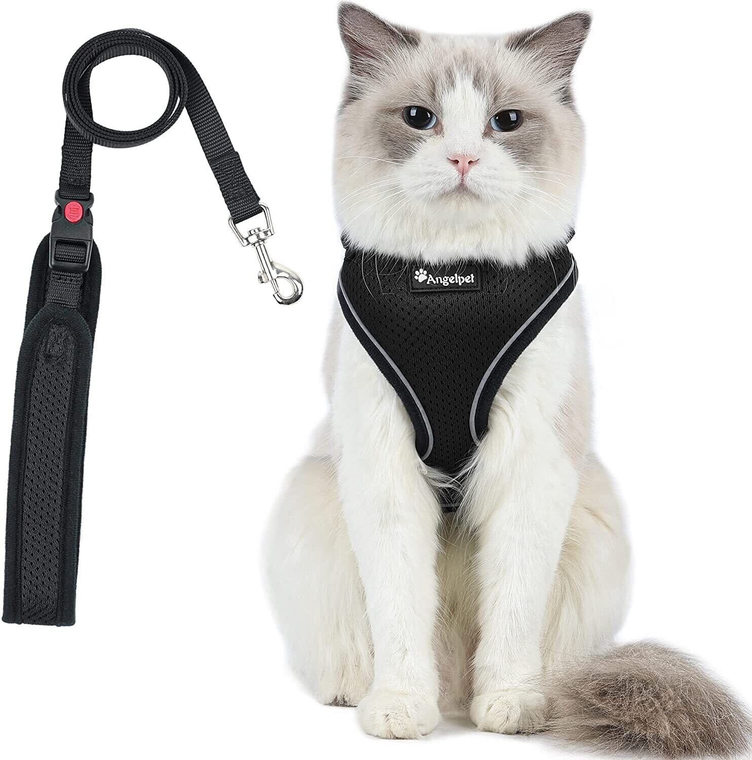 猫用 ハーネス 胴輪 猫具 ねこ ネコ 子猫 子犬 小型犬 散歩 お出かけ 抜けない ベスト ソフト胸あて 軽量 頭を通さずマジックテープで装着 サイズ調節可 夜反射 通気メッシュ (Sサイズ (x 1), ブラック_03)