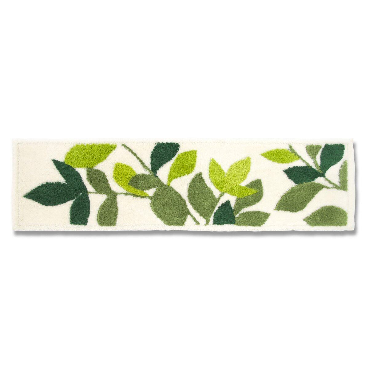 オカ(OKA) 玄関マット リーフグリーン コーナー吸着 約 30 cm× 110 cm アイボリー (ナチュラル 葉っぱ柄 吸着 洗える ラグ カーペット 日本製 大判 ウィルトン織)