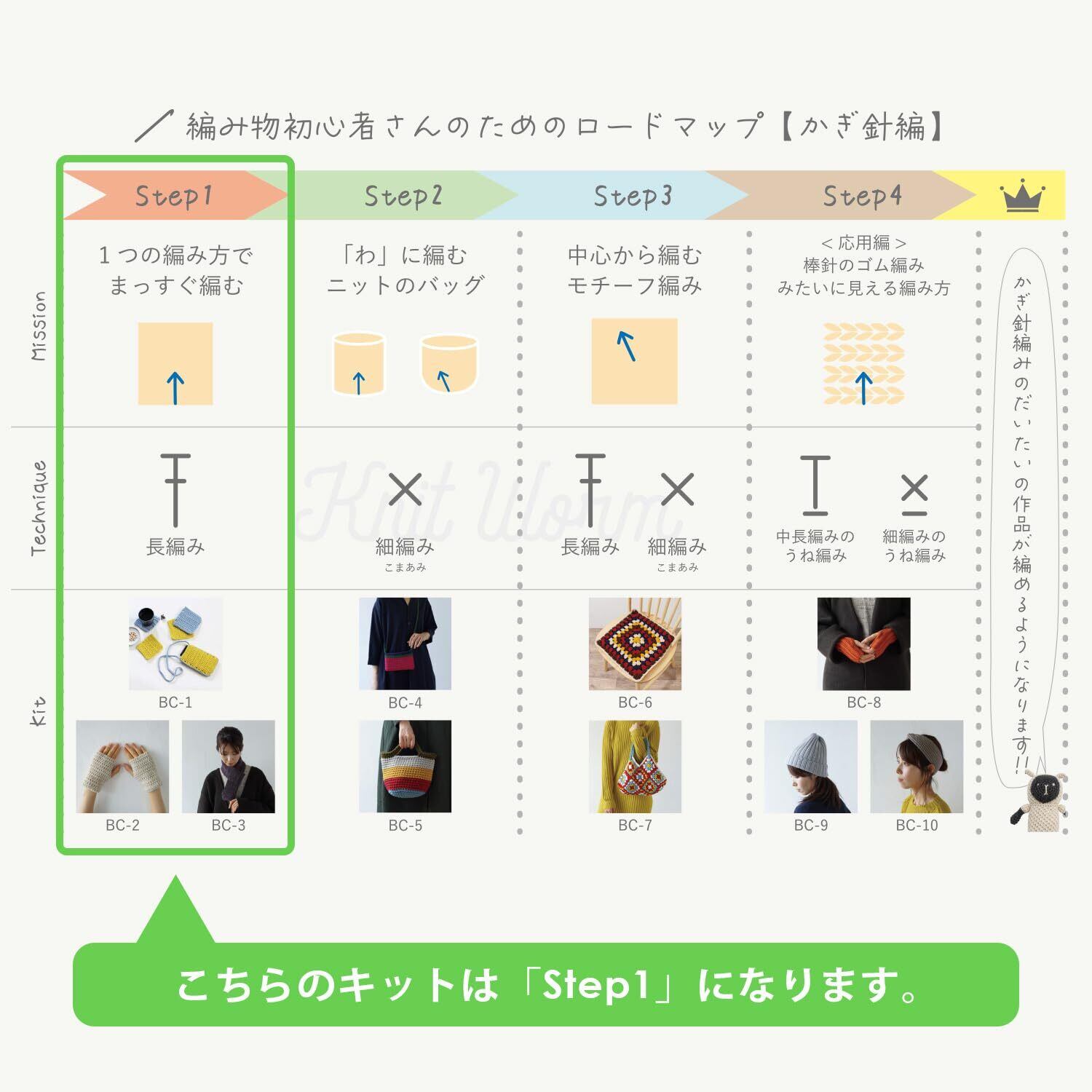 itohenlab. 編みものキット 初心者さん向けキット BC-1長編みのコースター/たわし/スマホショルダー