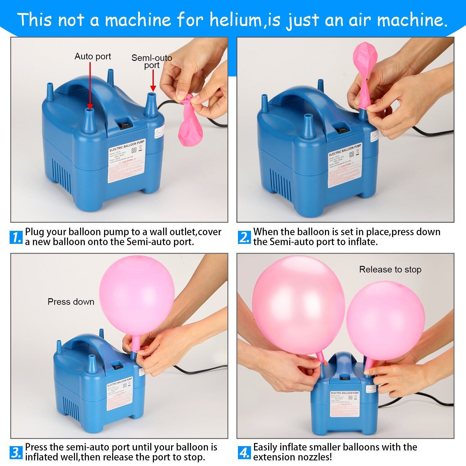● 操作も簡単! ● スイッチを押すだけのシンプルな操作で、風船を簡単に膨らませることができます。ユーザーに優しいデザインで、どなたでも使いやすい仕様です。時間を短縮し、楽しむ瞬間を増やしましょう!