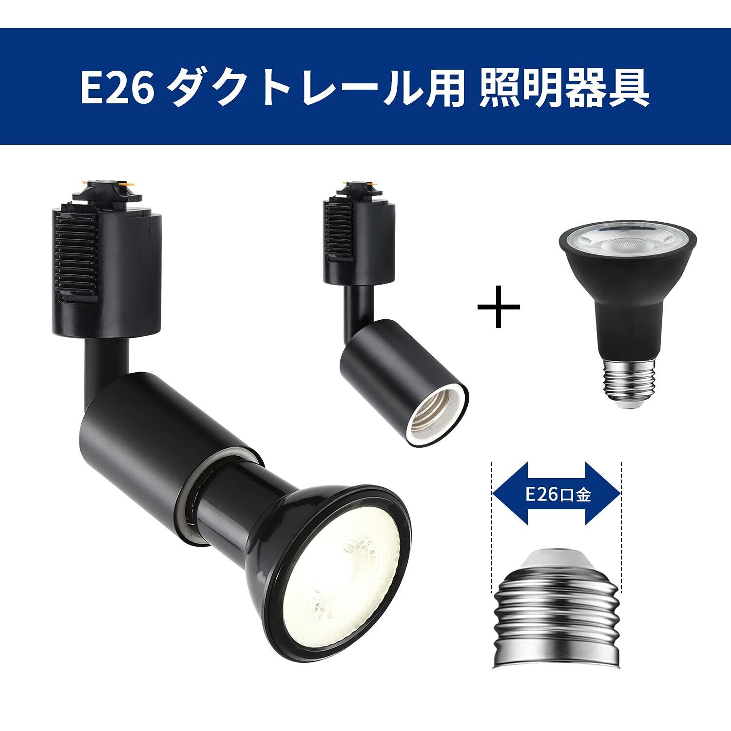 LVWIT ライティングバー用 スポットライト E26口金 電球付き ダクトレールライト 省エネ 6W ビーム電球 PAR20 5000K 昼白色 ブラック 角度調節可能 照明器具 LED電球+器具 PSE認証済 6個セット
