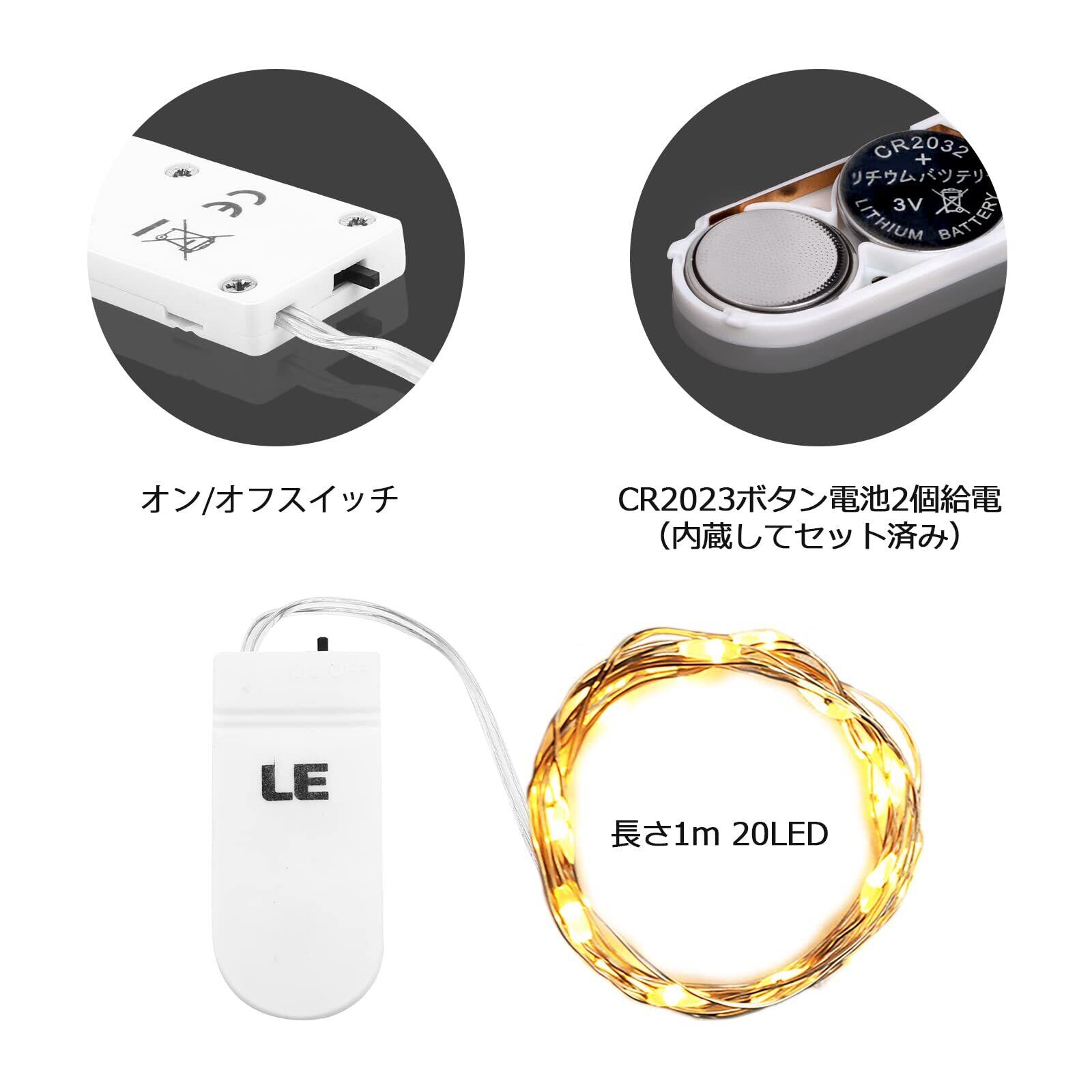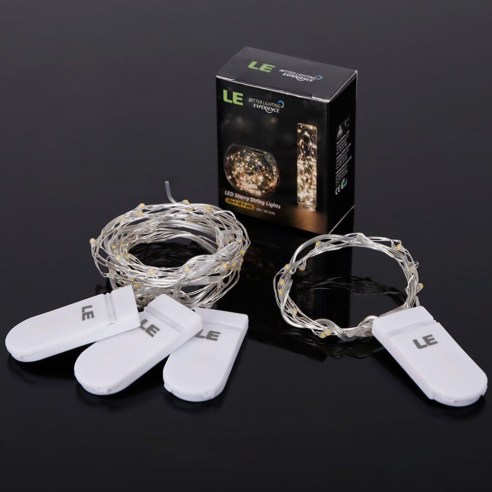 Lighting EVER LEDストリングライト 電池式フェアリーライト LEDイルミネーション 1m 20LED 電球色 防水銅線ワイヤー ハロウィン 飾り付け クリスマス飾り 結婚式 パーティー 装飾ライト クリスマスツリー電飾 おしゃれ 4個パック ボタン電池8個付属