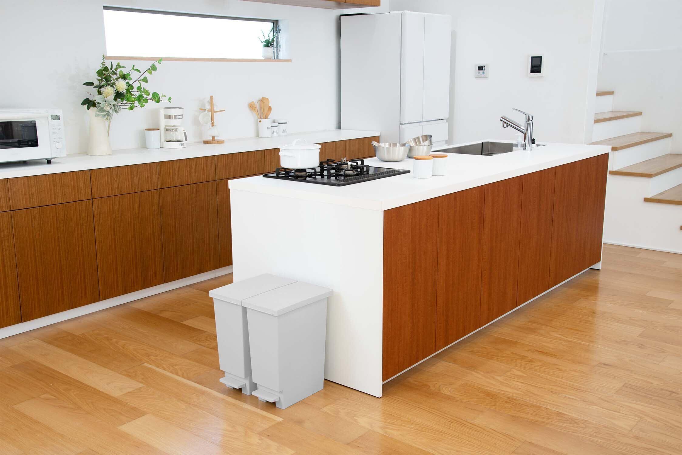 新輝合成 トンボ ネオカラー ゴミ箱 スリム 軽いペダルでサッと開く 20リットル 2個セット ホワイトグレー 幅20×奥行35.5×高さ45cm 蓋付き 分別 日本製