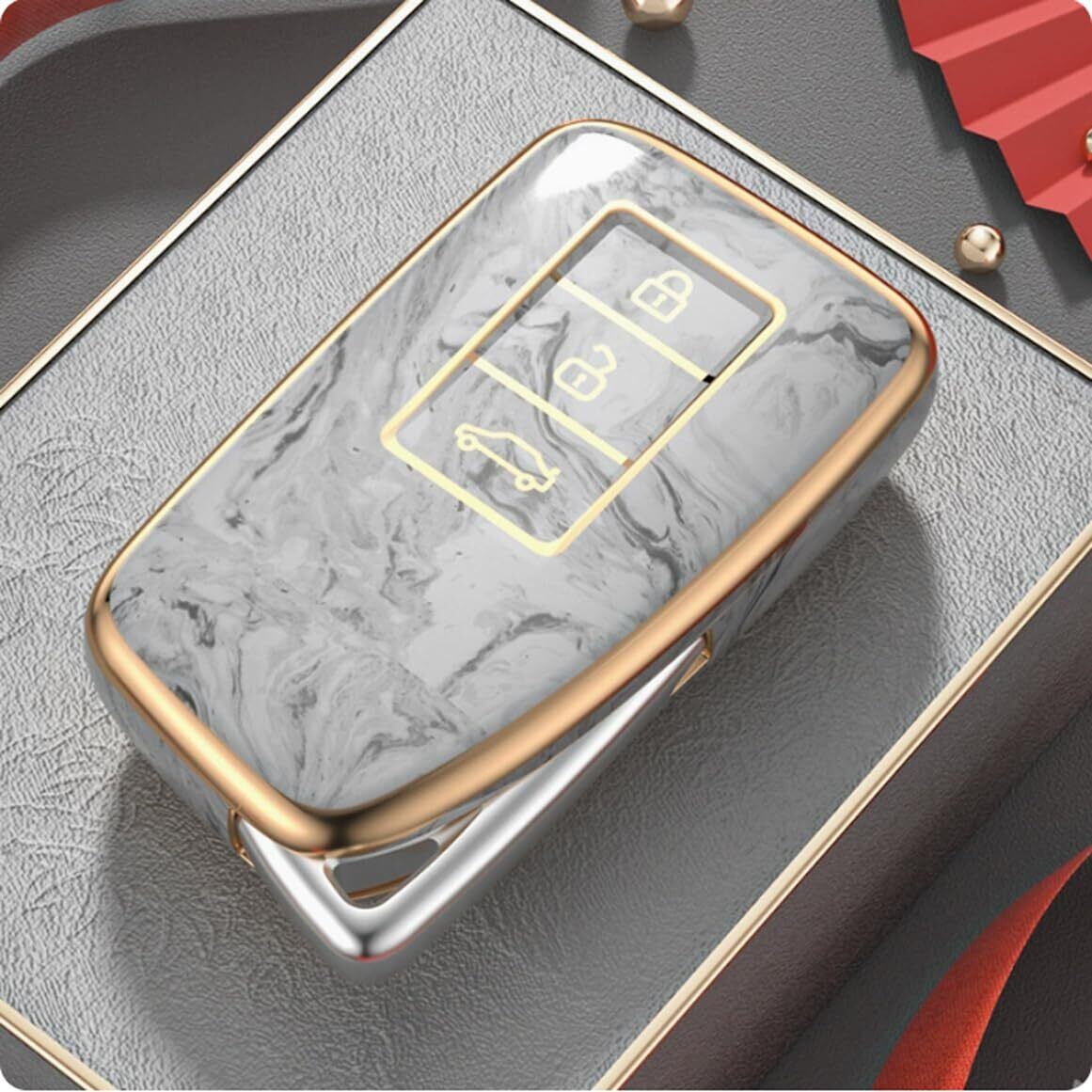 [BAGOOD] レクサス キーケース キーホルダー キズ・落下防止 大理石柄 TPU 超軽量 アクセサリー 取り付け便利 LEXUS NX 20系 10系 RX IS GS RC RC F LX 3ボタン (グレー)