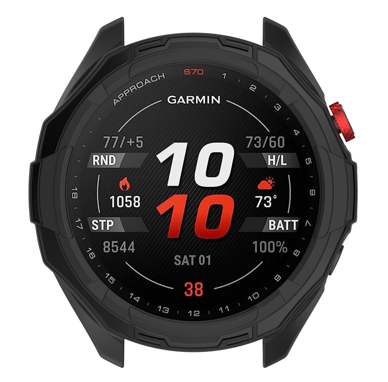 SHEAWA for Garminガーミン Approach S70 47mm ケース カバー 2個セット TPUゴム 保護ケース 互換品 保護カバー 耐衝撃 アクセサリー (ブラック+アーミーグリーン)