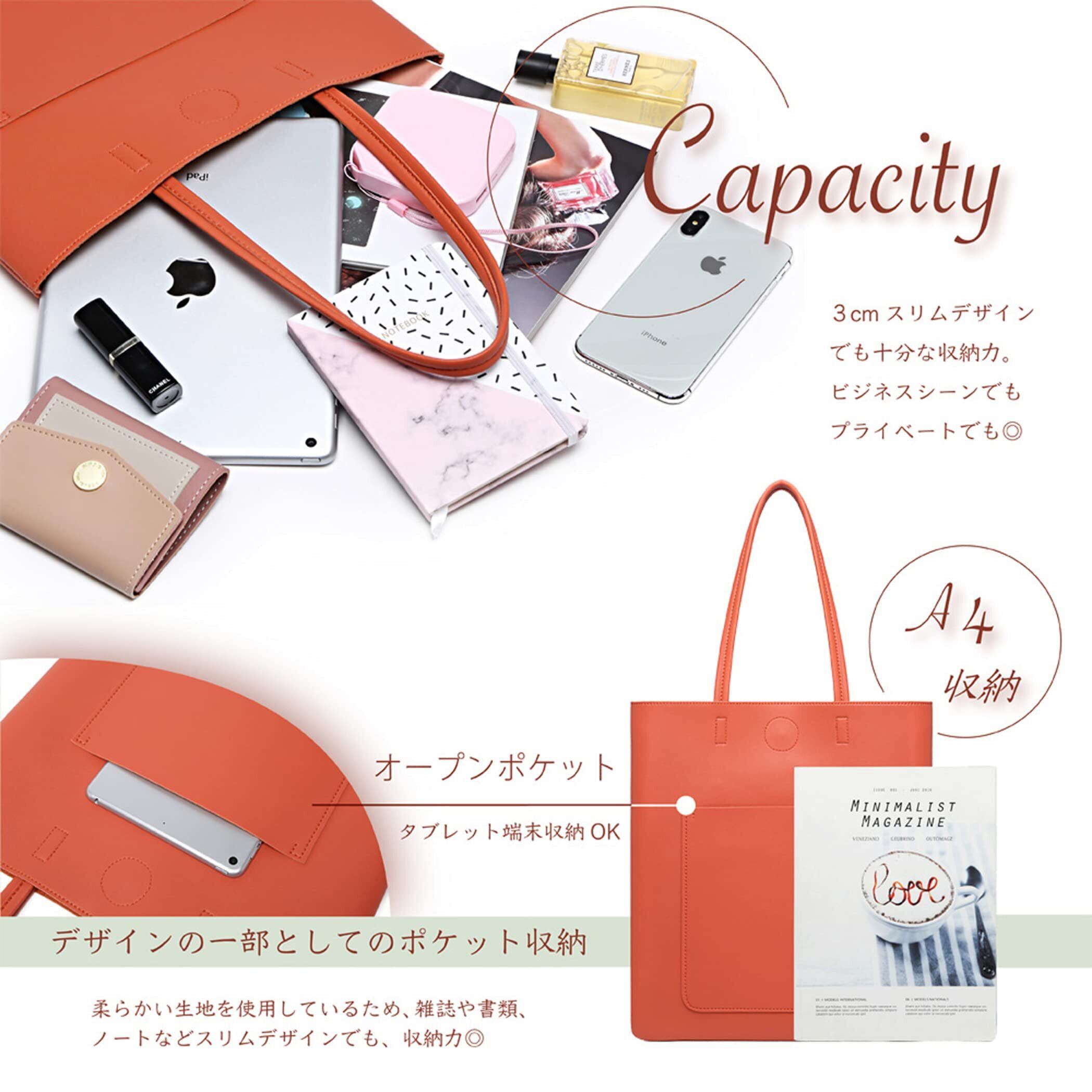 無駄のないシンプルなデザインが魅力①書類を入れるのにぴったりのサイズ感! ②レザータッチソフトPUレザーを使用、軽くて丈夫◎③オンではサブバッグとしておしゃに持つのもおすすめです