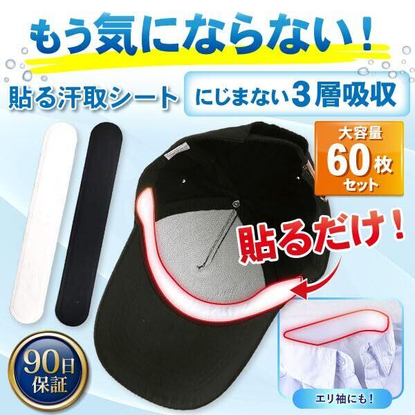 [bh life] キャップライナー 【60枚】 帽子 汗取りシート 汗取りパッド 汗取りテープ キャップ メンズ レディース 汗止め テープ 使い捨て 直貼り 汗ジミ 薄型 汗 襟汚れ防止