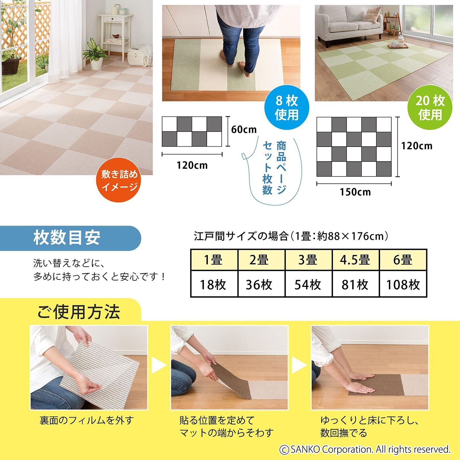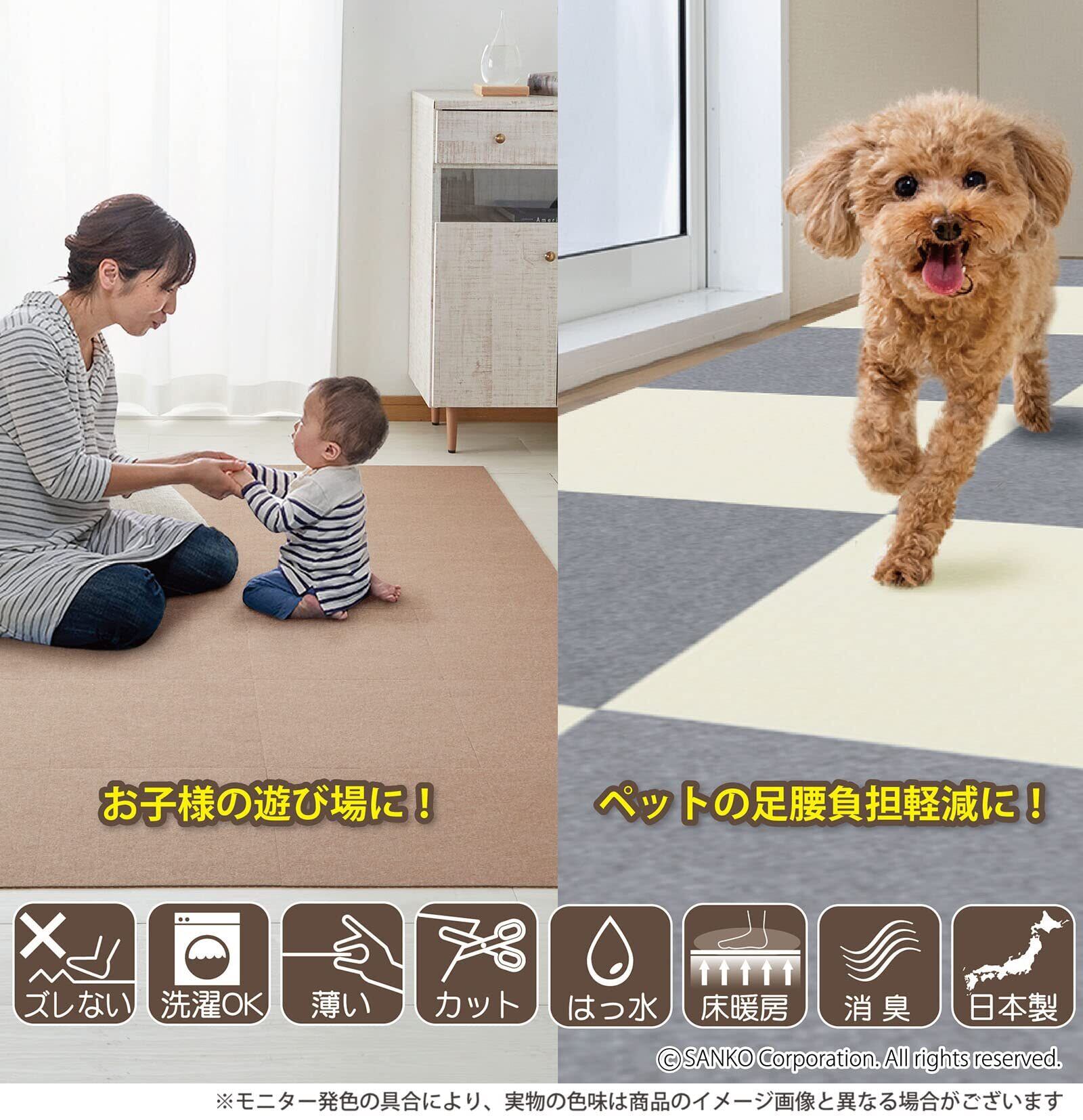 サンコー三つ葉(Sanko Mitsuba)【日本製 撥水 消臭 洗える】サンコー ずれない タイルカーペット 30×30cm ライトベージュアイボリー 8枚フラットタイプ おくだけ吸着 ジョイントマット KH-20
