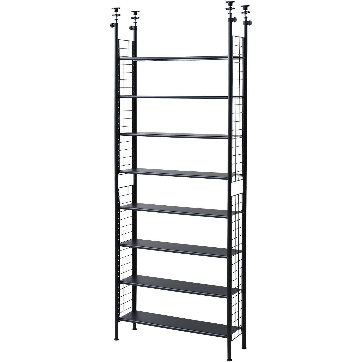 山善(YAMAZEN) フリーラック (突っ張り) スリム 幅78×奥行25×高さ209-282cm 棚板耐荷重10kg 棚板の高さが変えられる 壁面収納 本棚 組立品 ブラック/ブラック STR-788(BK/BK)