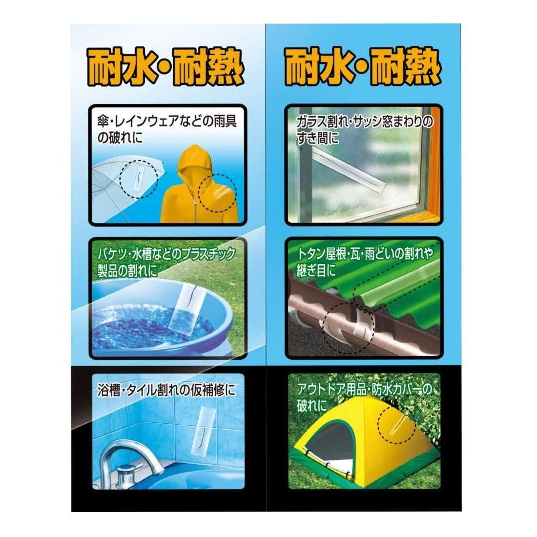 ・広範囲の材料にもビニルハウス・雨具・アウトドア用品・防水カバーの破れ、サッシ窓まわり・トタン屋根・瓦・雨どいの継ぎ目など