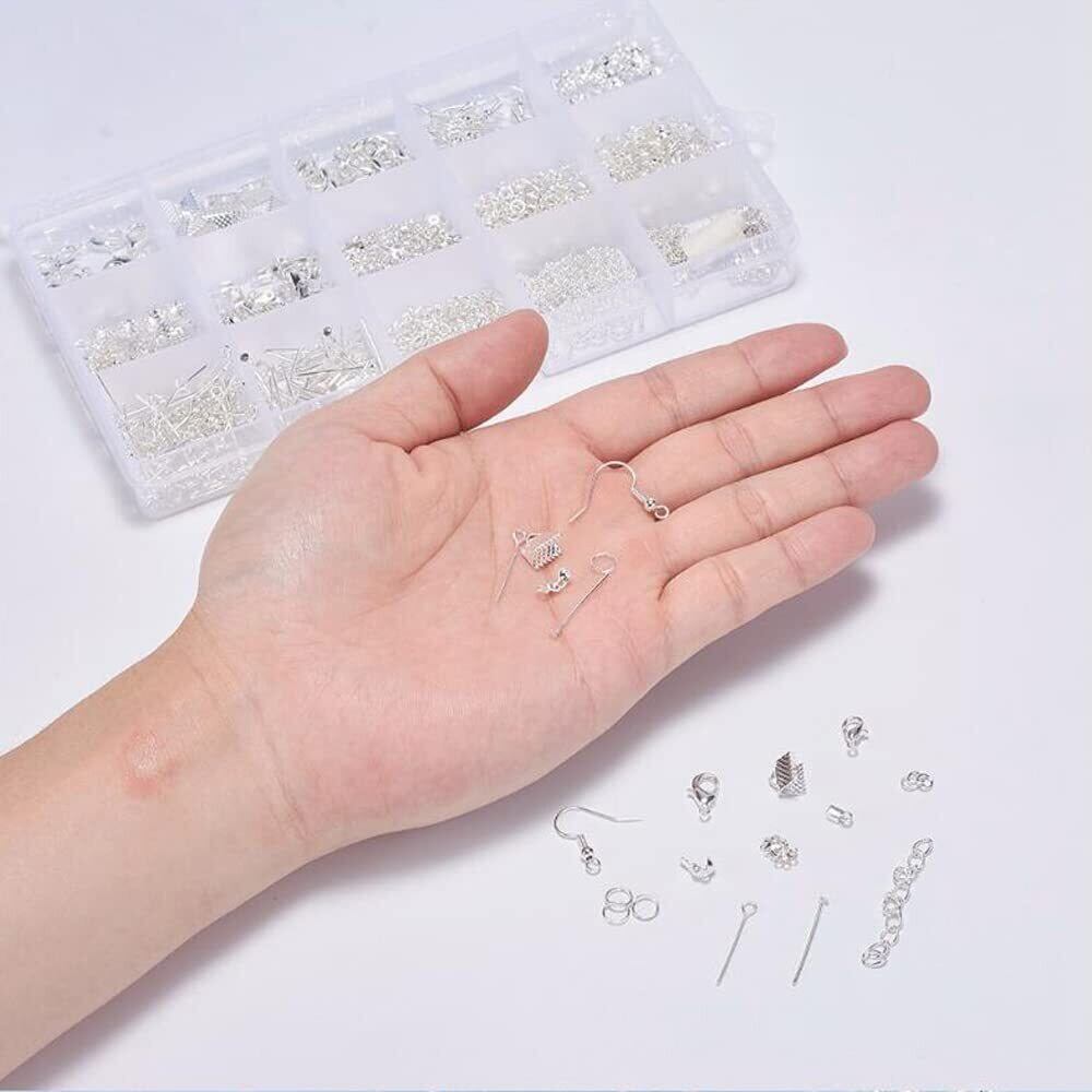 YFFSFDC 金具セット 15種 ハンドメイド アクセサリーパーツセット ゴールド アクセサリー パーツ ジュエリー ボールチップ チェーン ワニ口 DIY用 手芸用品 (シルバー)