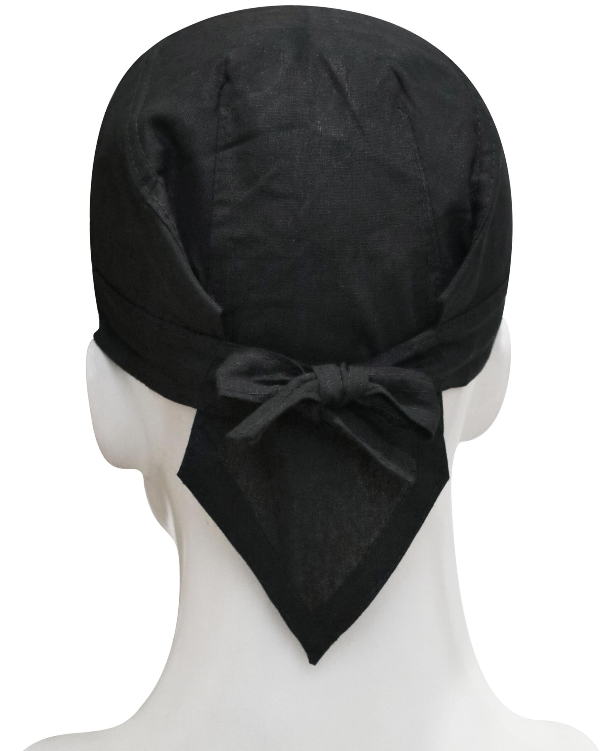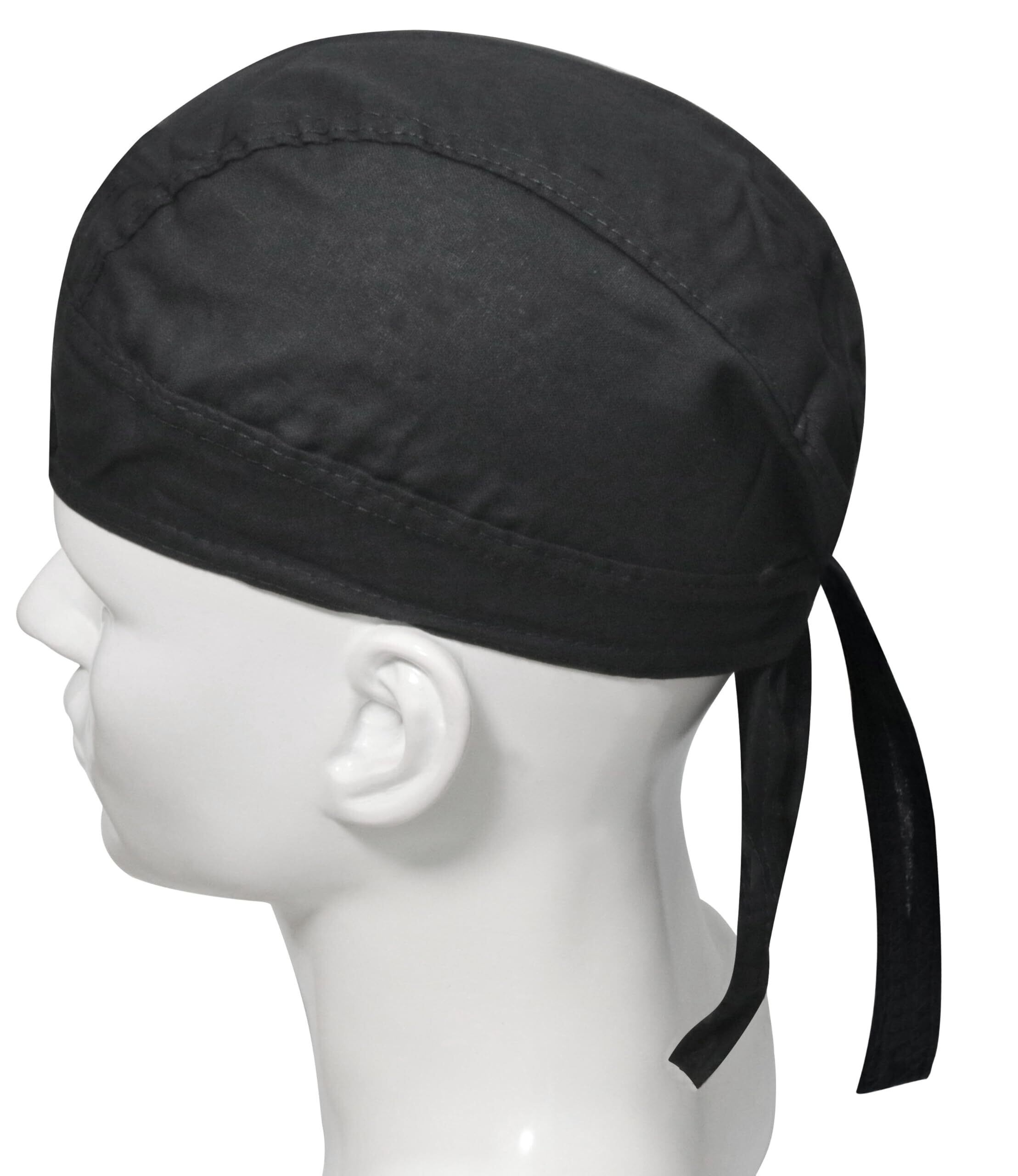 【簡単脱着 バンダナ】吸汗性に優れた肌に優しい綿素材の海賊風バンダナキャップ・スカルキャップ;キャップを被ってから後ろでヒモを結べば簡単にサイズ調整が出来ます。防臭・防汚 ヘルメット・帽子 インナーキャップ、ビーニー・カチューシャ、髪留め、汗止め、ヘッドバンド、ヘアバンド、ハチマキ、日よけ・紫外線対策、バンダナ、寝ぐせ隠し、ウィグ インナー、防災装備、コスプレ・コスチューム 衣装、宴会、パーティー衣装、防寒・防風・埃よけなど多用途にお使い頂けます。つば無しのシンプルなバンダナキャップです。