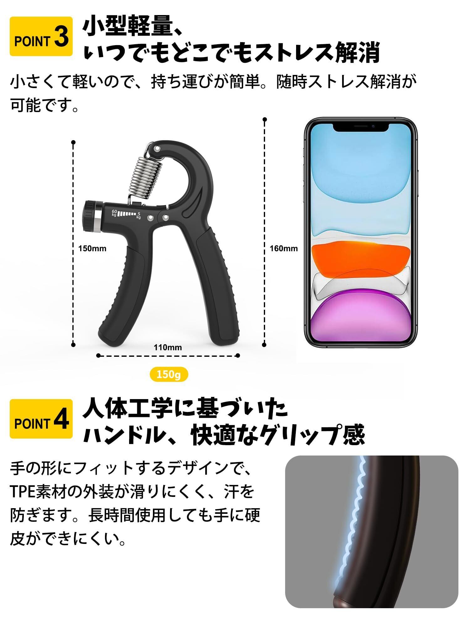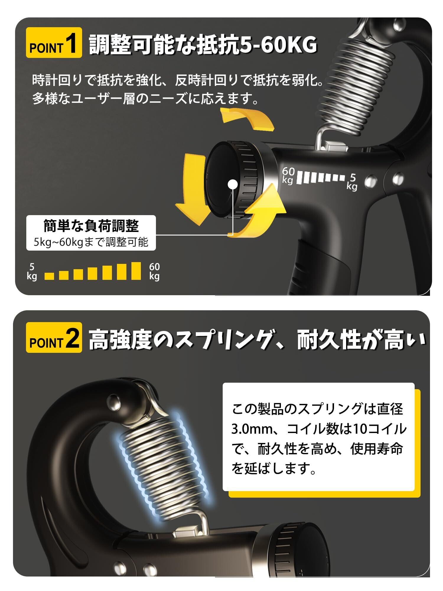 【 高品質のバネ、丈夫で耐久性がある】握力装置は直径3.0mm、コイル数10個の高強度スプリングを採用し、より頑丈で耐久性があり、耐用年数が長い。