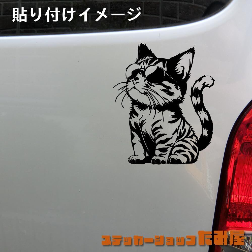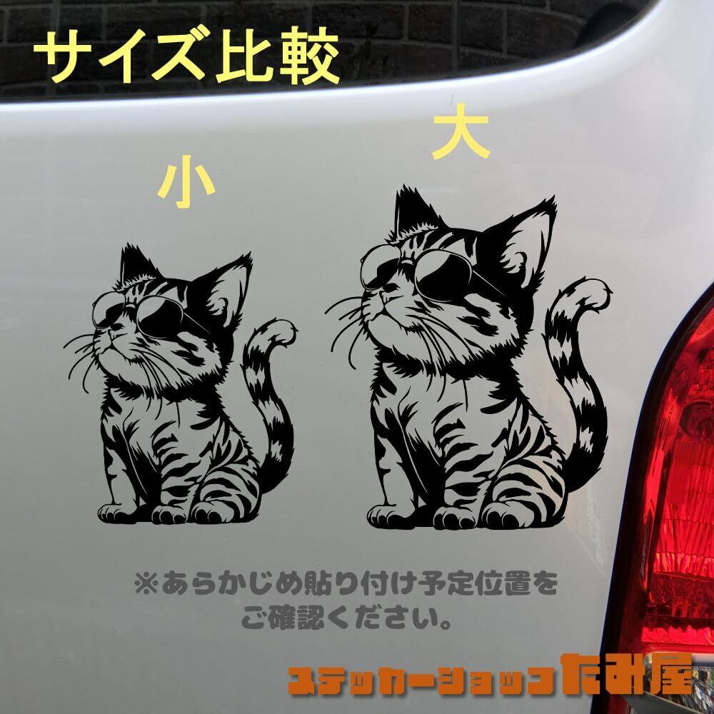 たみ屋 サングラス猫ステッカー カッティングステッカー 防水 日本製 (猫A(大), 黒)