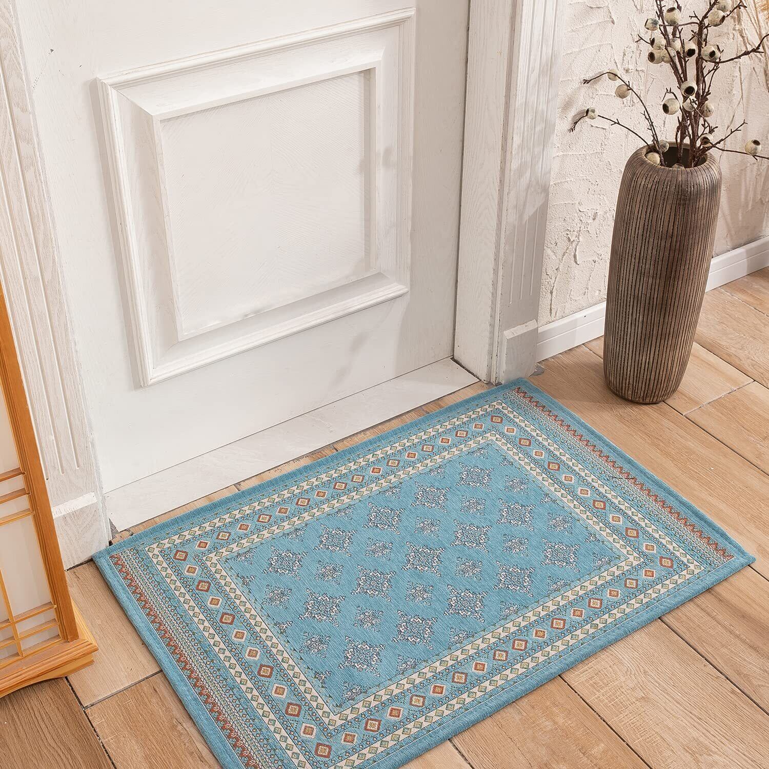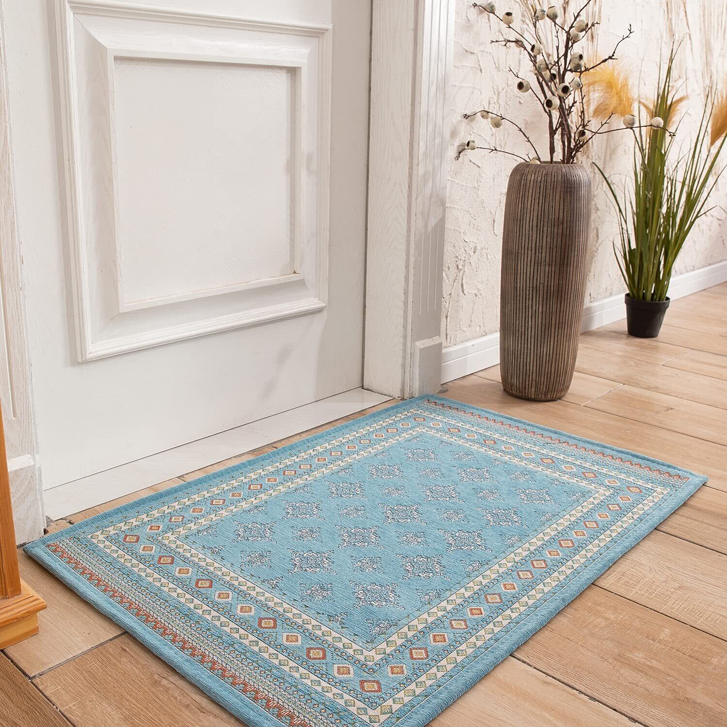INSIMAN カーペット 玄関マット 屋外 屋内 北欧 洗える おしゃれ ドアマット 泥落とし ゴブラン織り すべり止め 床暖房対応 50 * 80cm 業務用 家庭用 オフィス用 ブルー
