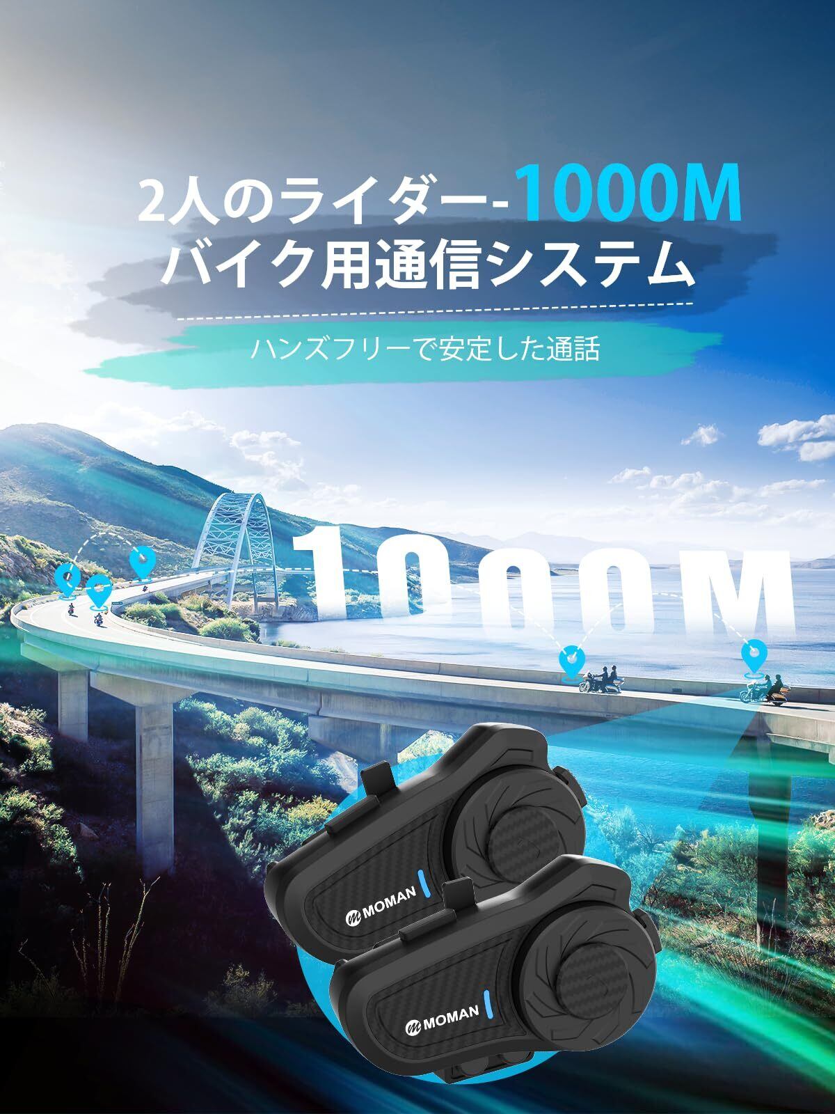 【ライダー2人用1000mインターコム】Moman H2 Pro(New ver.)バイクヘルメットインターコムを使用すると、最大1000mの範囲で仲間のライダーと途切れることなくチャットできます。スキー、パラシュートなど、さまざまなアウトドアアクティビティに対応しています。