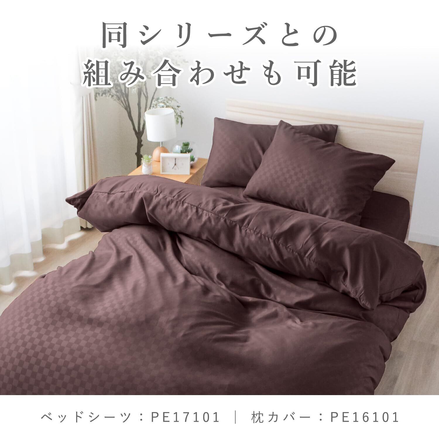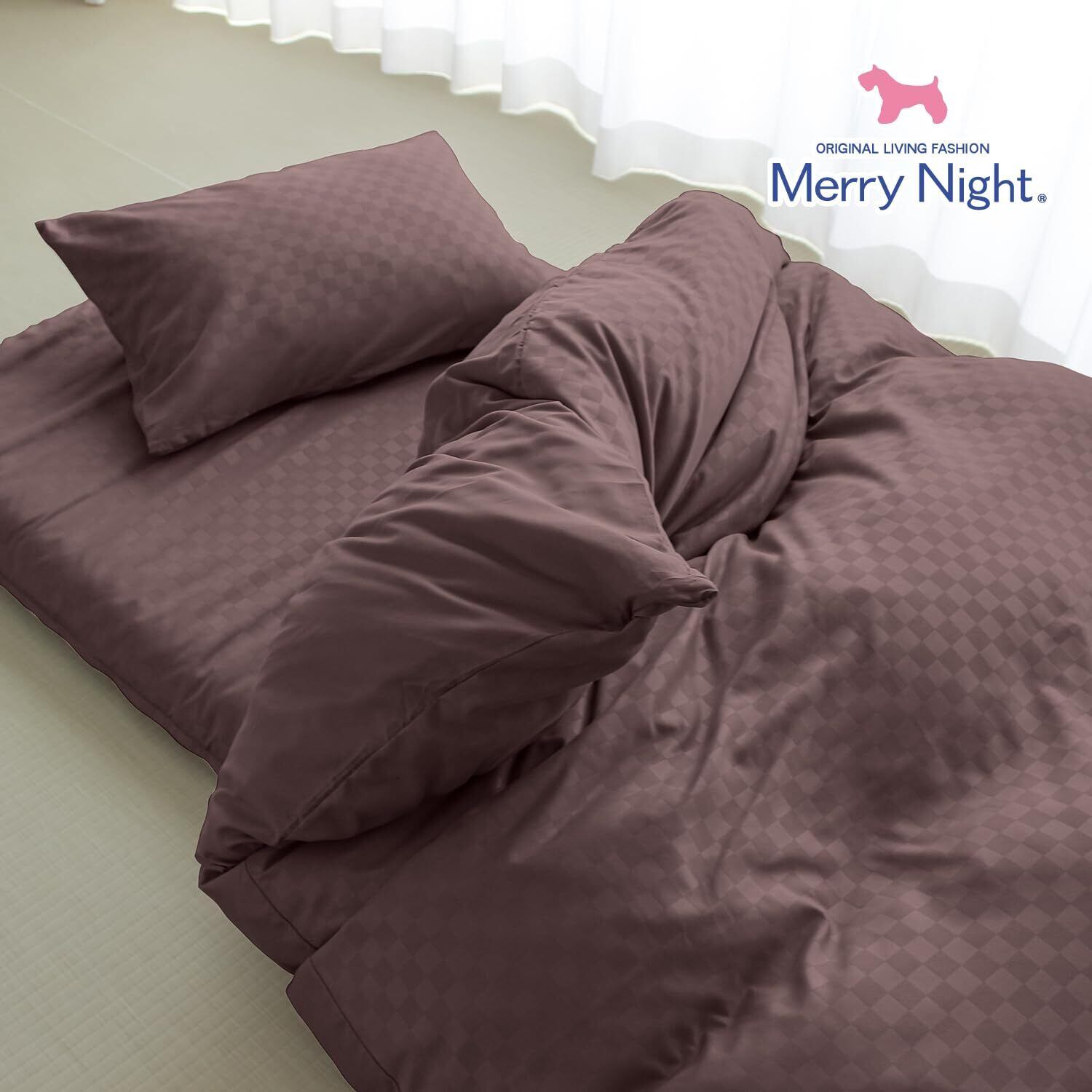 メリーナイト 掛け布団カバー 市松柄 ブラウン シングルロング 約150×210cm 光沢感 和モダン 洗える シワになりにくい 速乾 PE12101-93