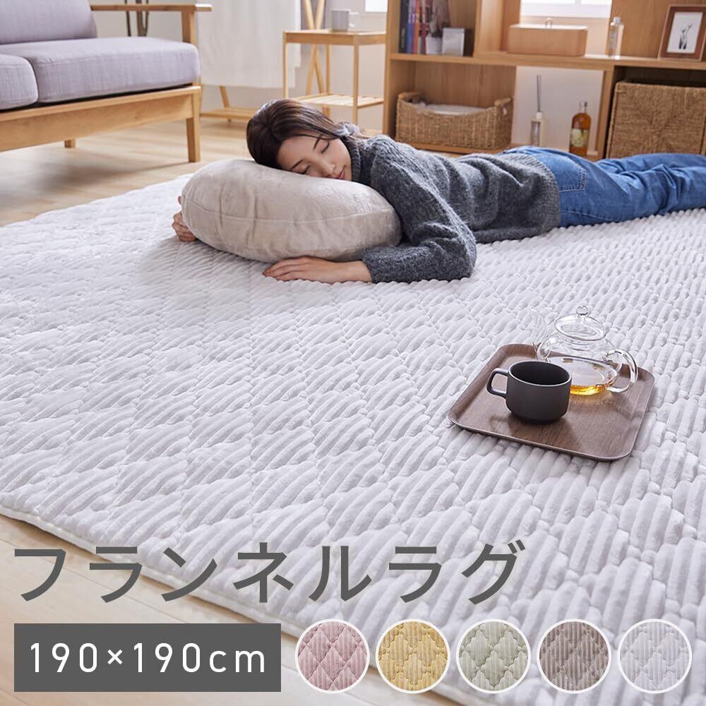 アイリスプラザ カーペット ラグマット ラグ 洗える 滑り止め 190×190 2畳 抗菌 防ダニ 正方形 フランネルラグ おしゃれ かわいい アイボリー