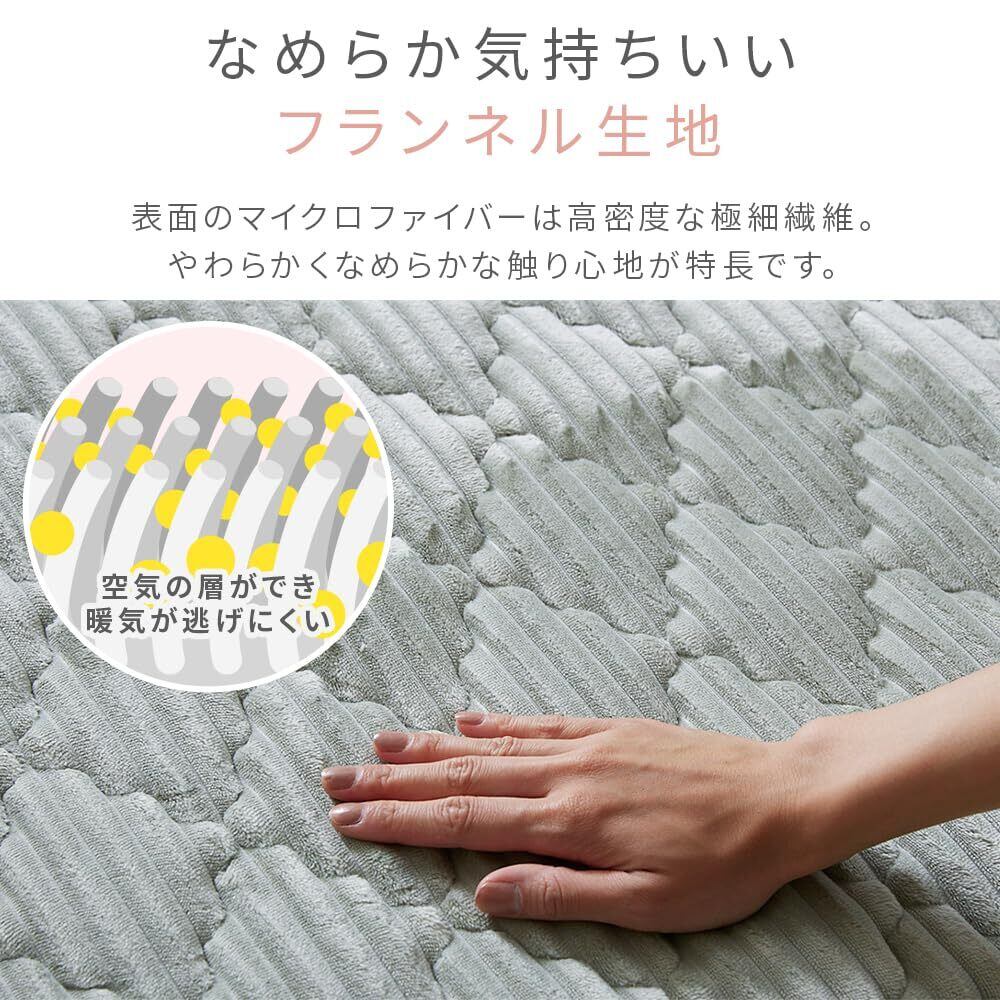 商品サイズ(cm):幅約190×奥行約190 商品重量:約2.33kg 材質 表地:ポリエステル100%(フランネル) 裏地:ポリエステル100%+滑り止め加工 中綿:ポリエステル100%(わた/抗菌防臭防ダニ加工)+ウレタン