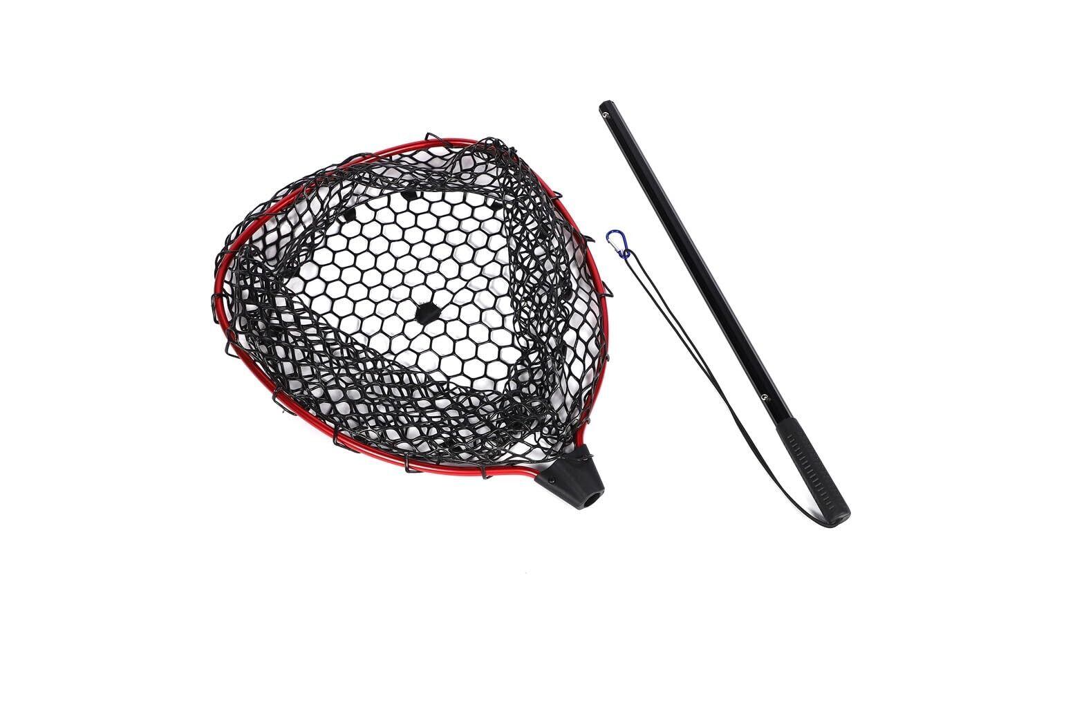 Kanoan ラバー ランディング ネット フライ フィッシング ネット 折りたたみ 伸縮可能 赤 ハンドディップネット キャッチ用 カラビナ付き 漁船 釣り 網 魚