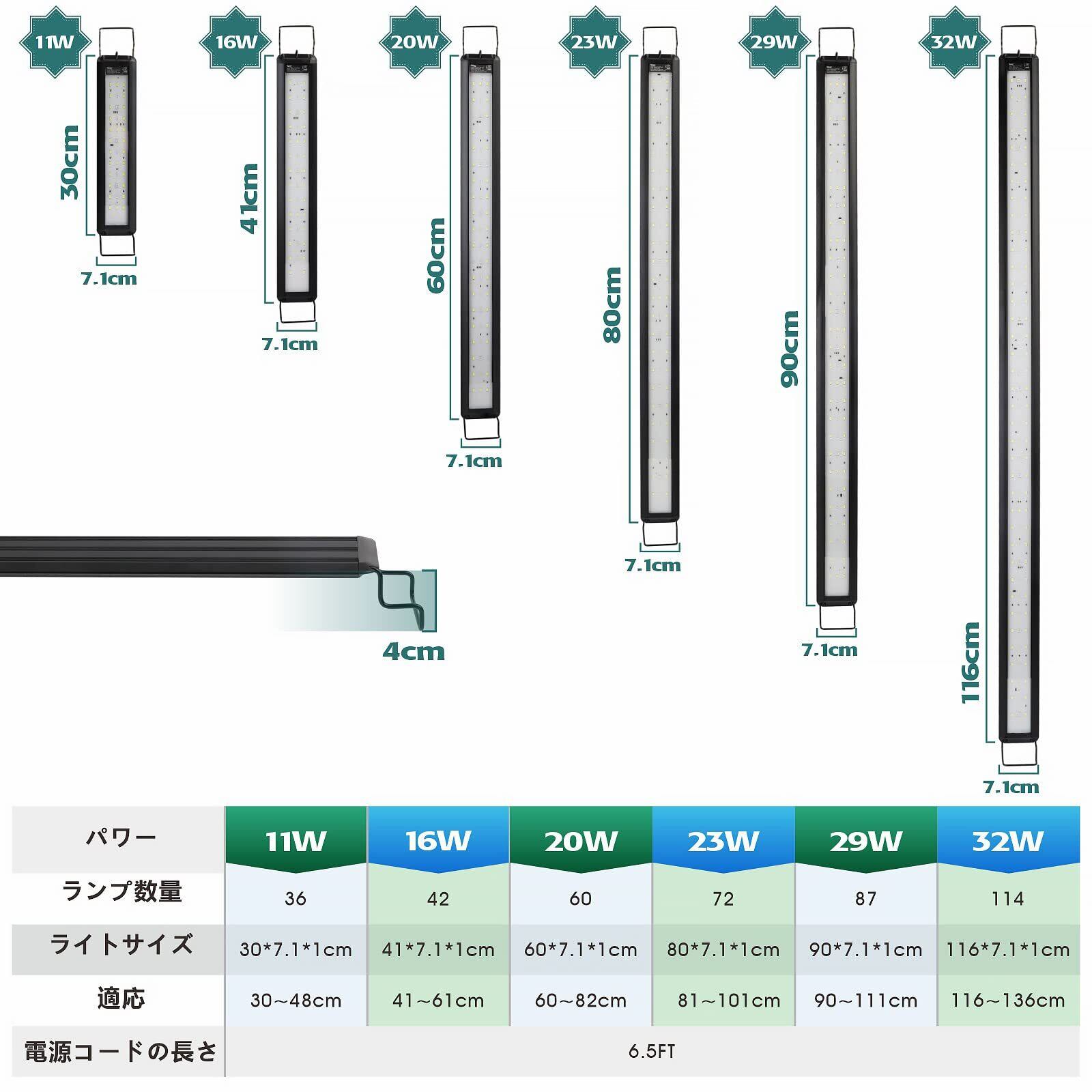 hygger 水槽ライト 6H/8H/12Hタイマー 10段階明るさ調整 3照明モード 水槽用 照明 ledライト アクアリウムライト 防水 水草 育成 熱帯魚 観賞魚 飼育 40-65CMの水槽対応 (16W)