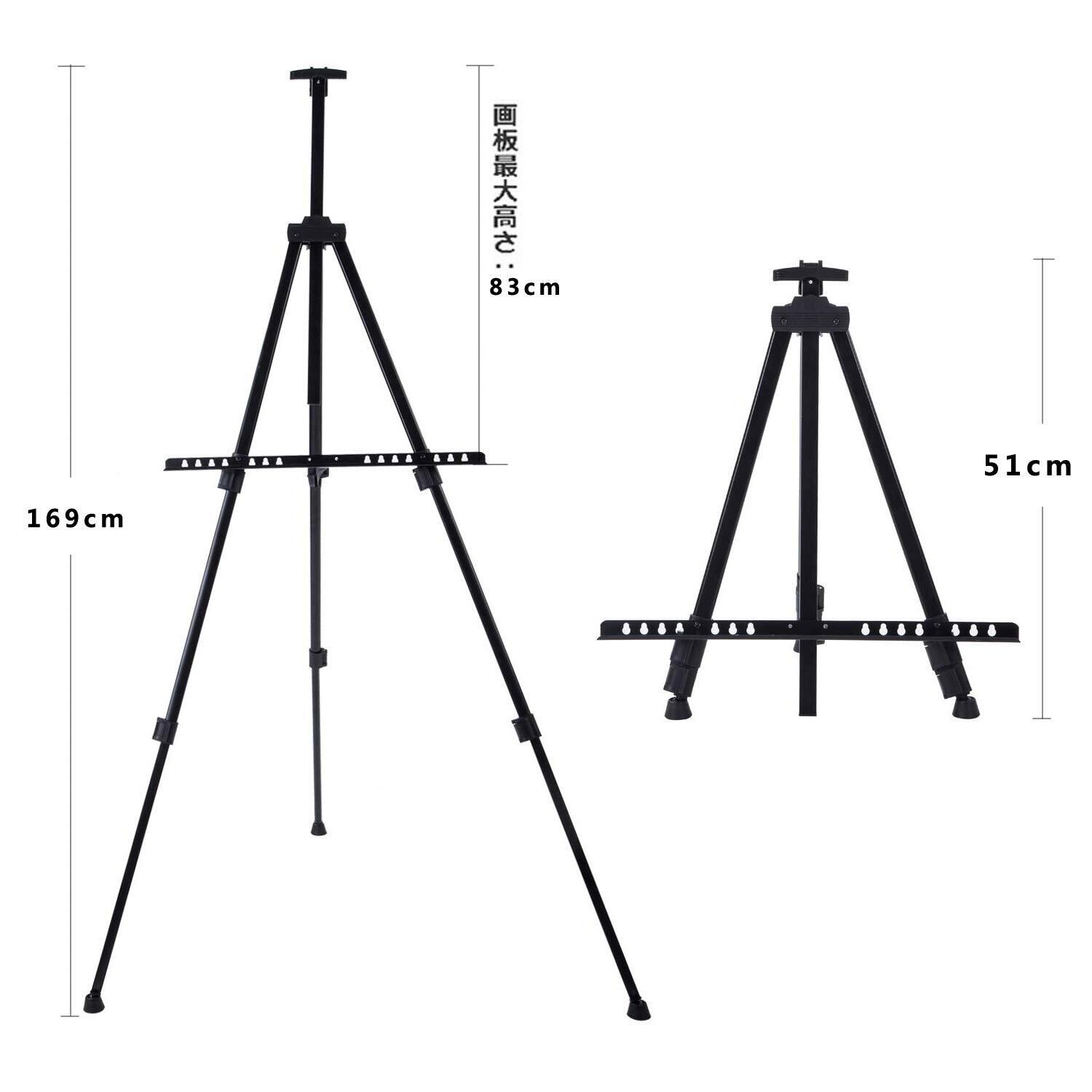 イーゼル メタルイーゼル AZAKBL 折りたたみ 軽量 高い安定性 高さ調節3段式 展示 装飾 看板 絵画 ポスター 収納袋付き