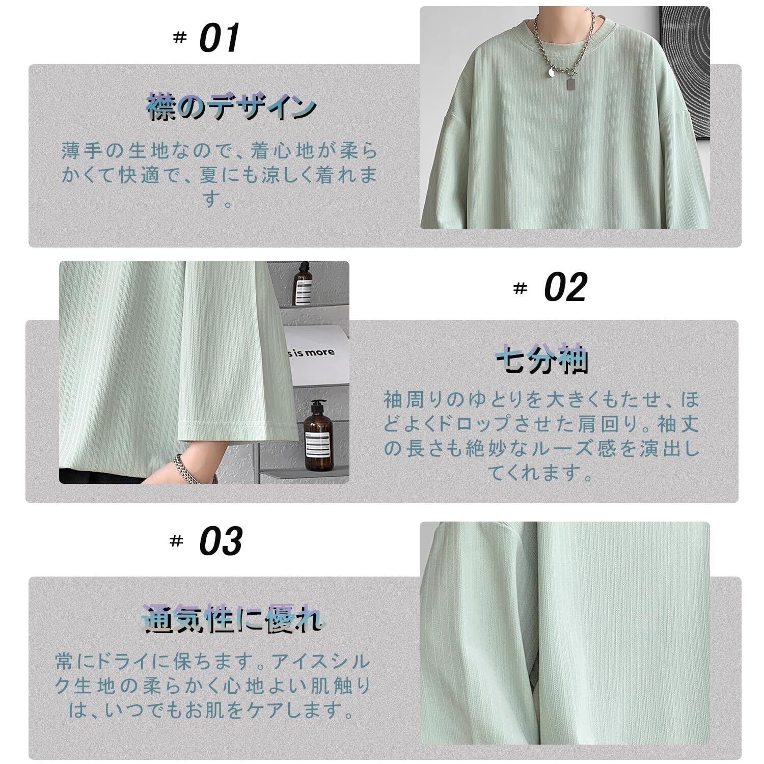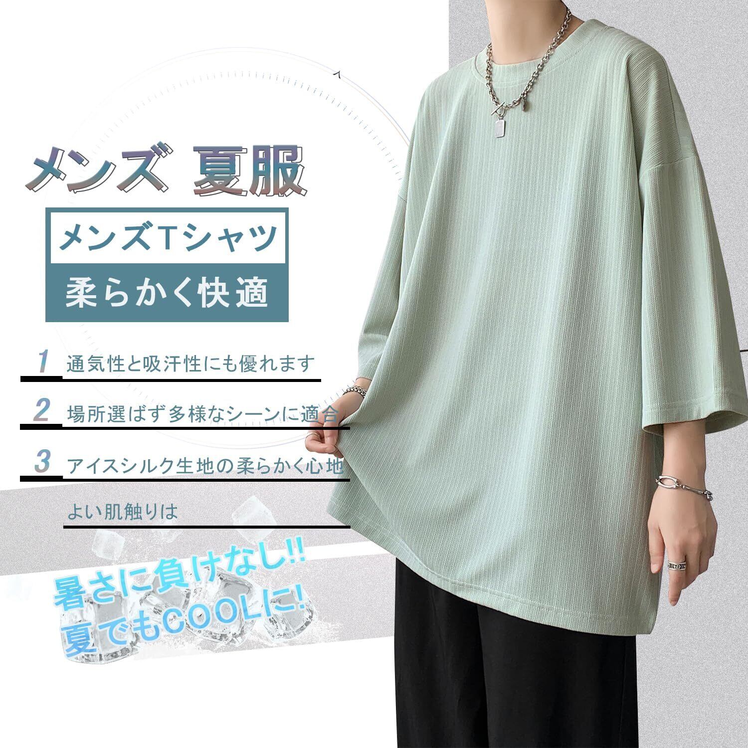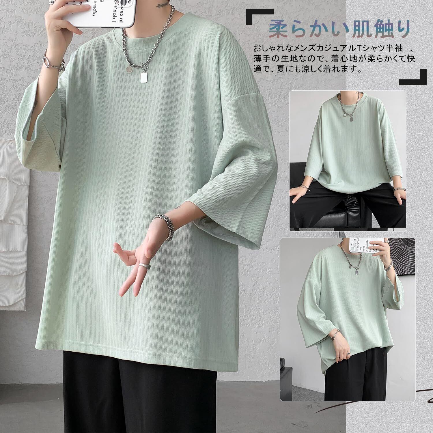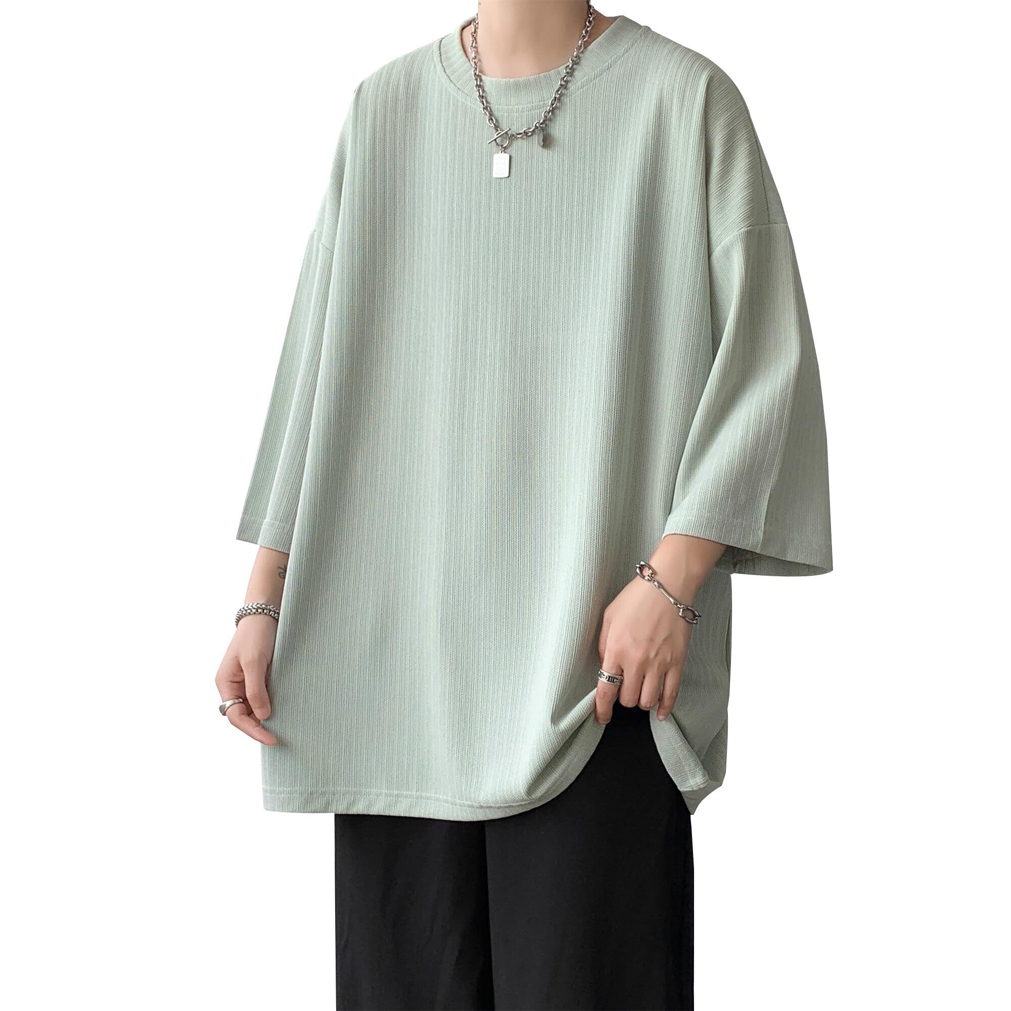 [BesBet] tシャツ メンズ 夏服 七分袖 おおきい サイズ 涼しい ゆったり かっこいい ビッグシルエット なつふく ストリート 人気 シンプル オシャレ 人気 無地 韓国風ファッション カジュアル トップス 柔らかい肌触り 洋服 軽い 柔らかい