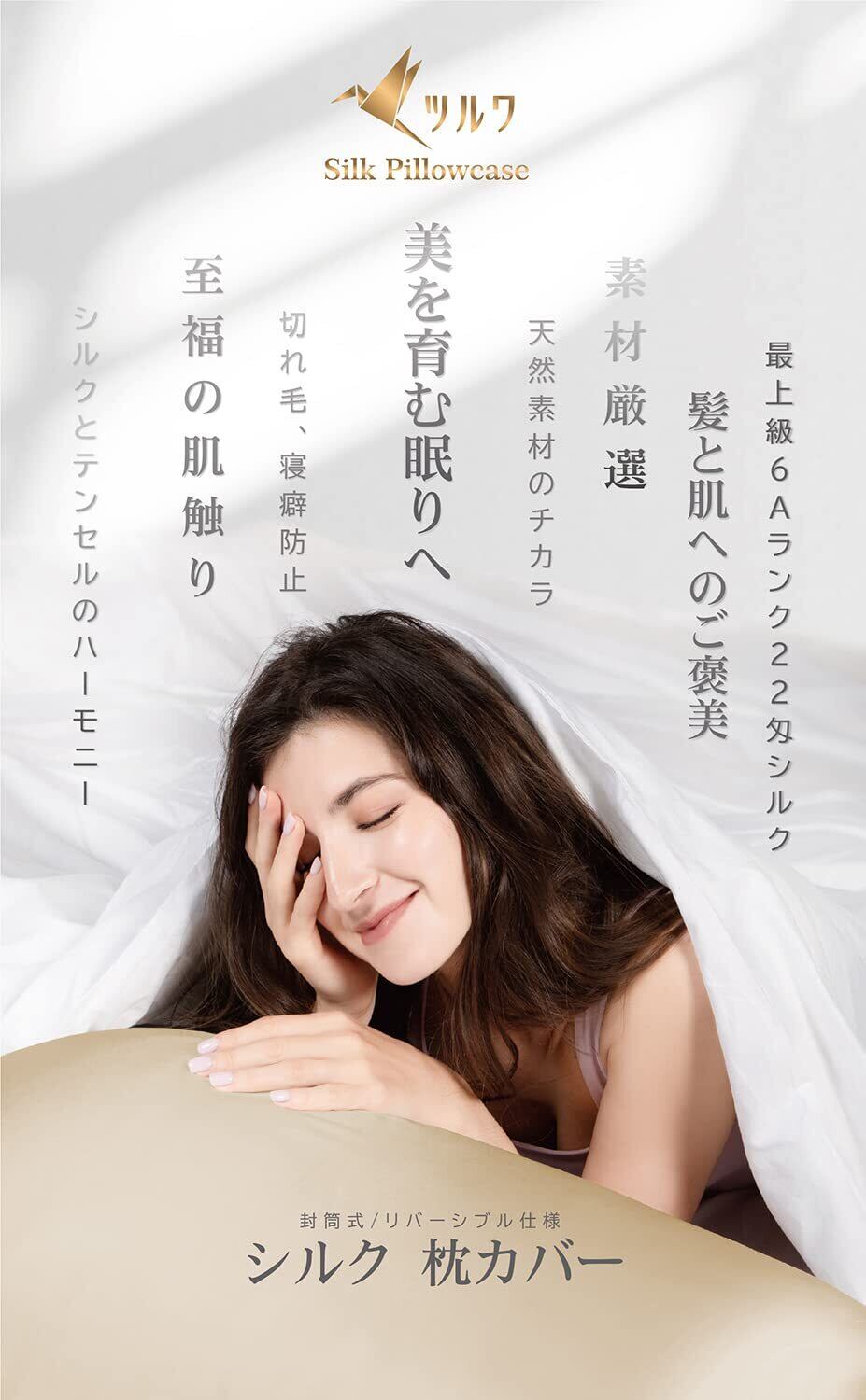 ツルワ シルク枕カバー 6Aクラスシルク100% 22匁 片面シルクタイプ テンセル 封筒式 洗える シルクピローケース 摩擦軽減 美肌 美髪 快眠 寝癖防止 肌に優しい ( シャンパンゴールド 35×50cm )