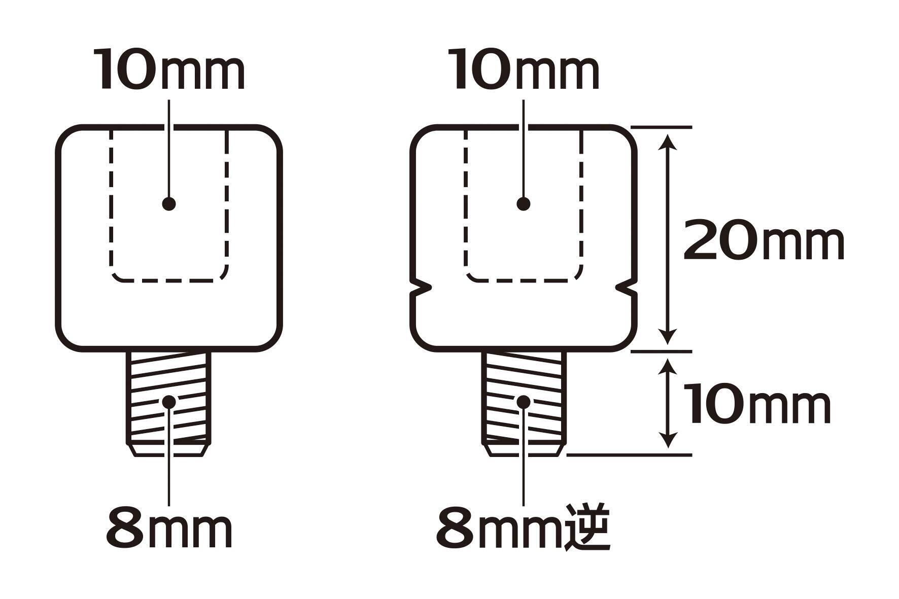 正ネジ10mmのミラーを、逆ネジ8mmの車両に装着する際に使用します。