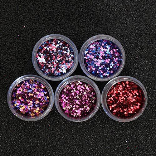 Kingsie グリッター 容器入り キラキラ ネイルパーツ ネイルアート ラメグリッター ラメパウダー 顔/ボディ/ヘア飾り クリスマス/パーティー 5個セット (レッド 5個セット)