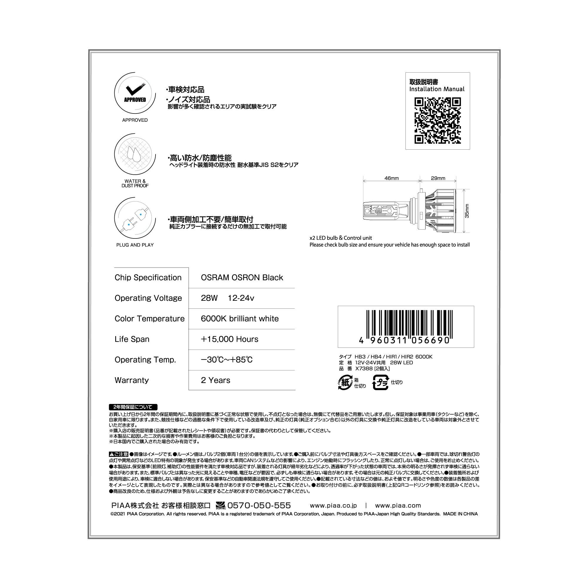 【Amazon.co.jp 限定】PIAA(ピア) ヘッドライト/フォグライト用 LED 6000K BRILLIANT WHITE 12V 28W 4000lm HB3/4 HIR1/2 2年保証 車検対応 2個入 X7388