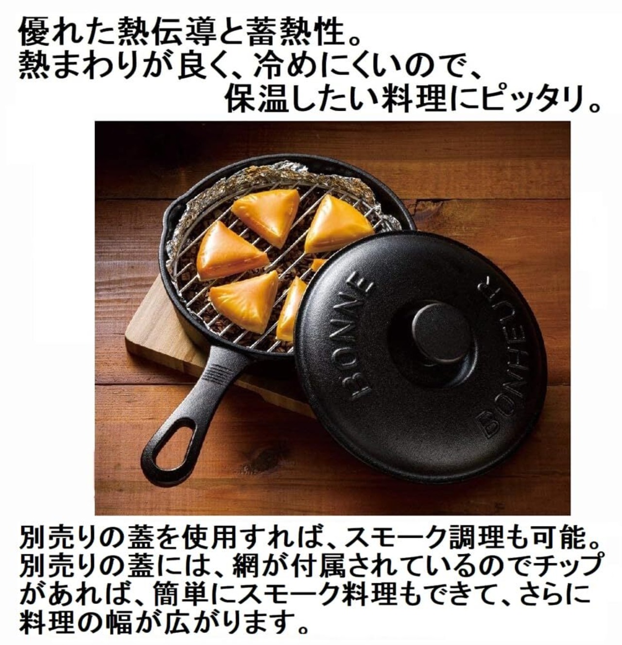 ● 長く使える耐久性! ● 鉄鋳物製のスキレットは頑丈で、適切に手入れをすれば何年にもわたって使用できます。その魅力的な風合いと耐久性は、世代を超えて愛される逸品です。