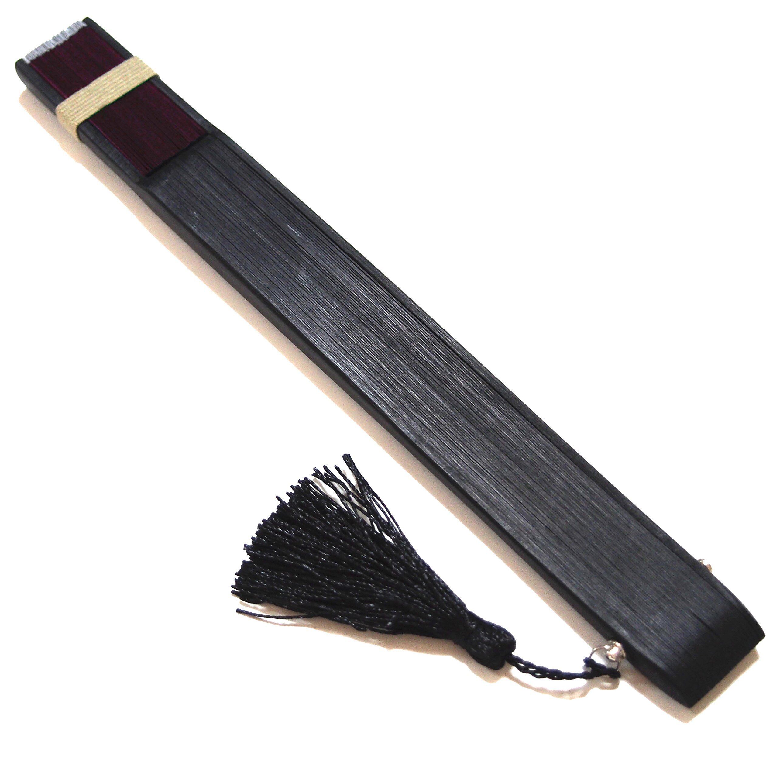 【Amazon.co.jp限定】 扇子職人の手作り 男性 女性 兼用 短地 シルク 扇子 骨色黒染 22cm 42間 (房付き) ワイン 126031
