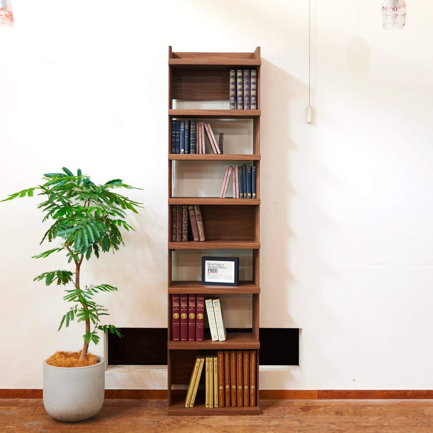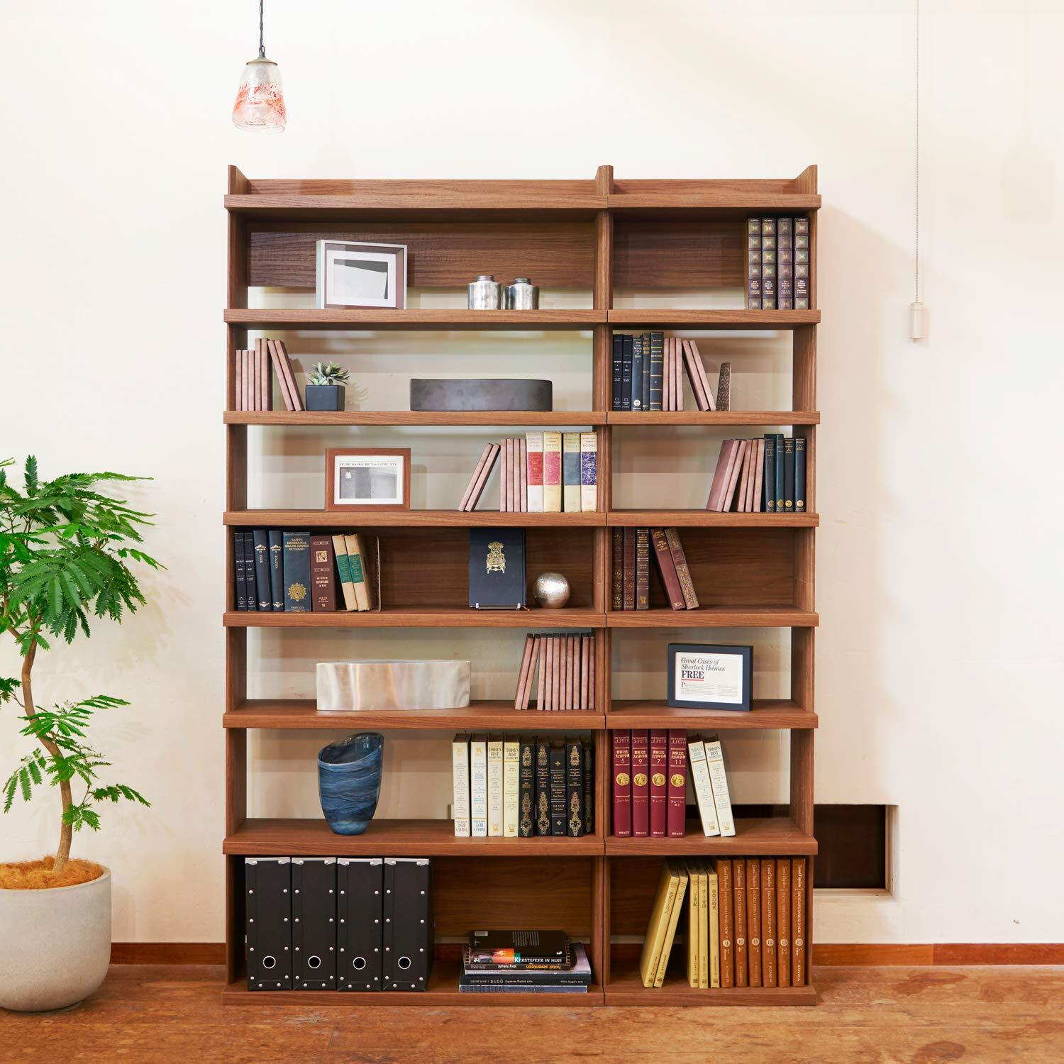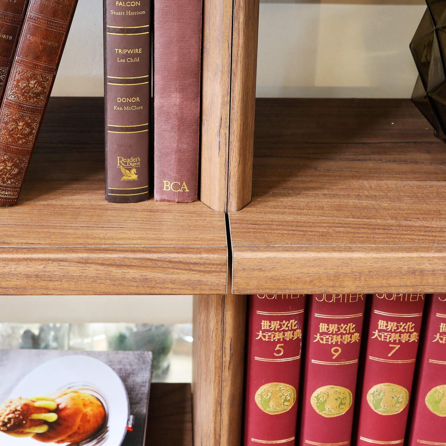 厚めの棚板が前面に飛び出した独特のデザイン。高級感・重厚感のある本棚 ラック シェルフです。