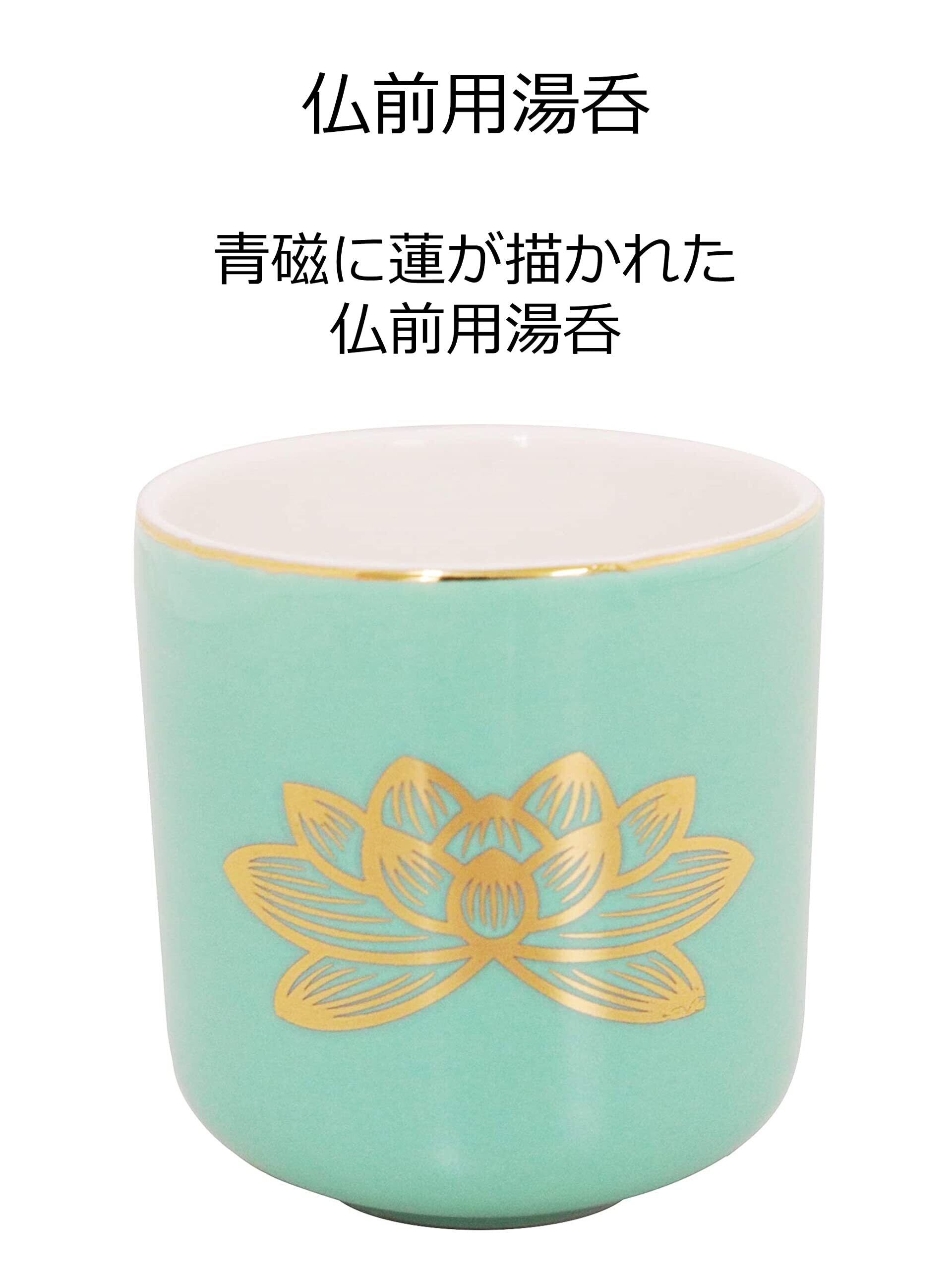●青磁に蓮が描かれた仏前用湯呑●仏前のお供えにぴったり●家庭での普段使いや業務用におすすめ