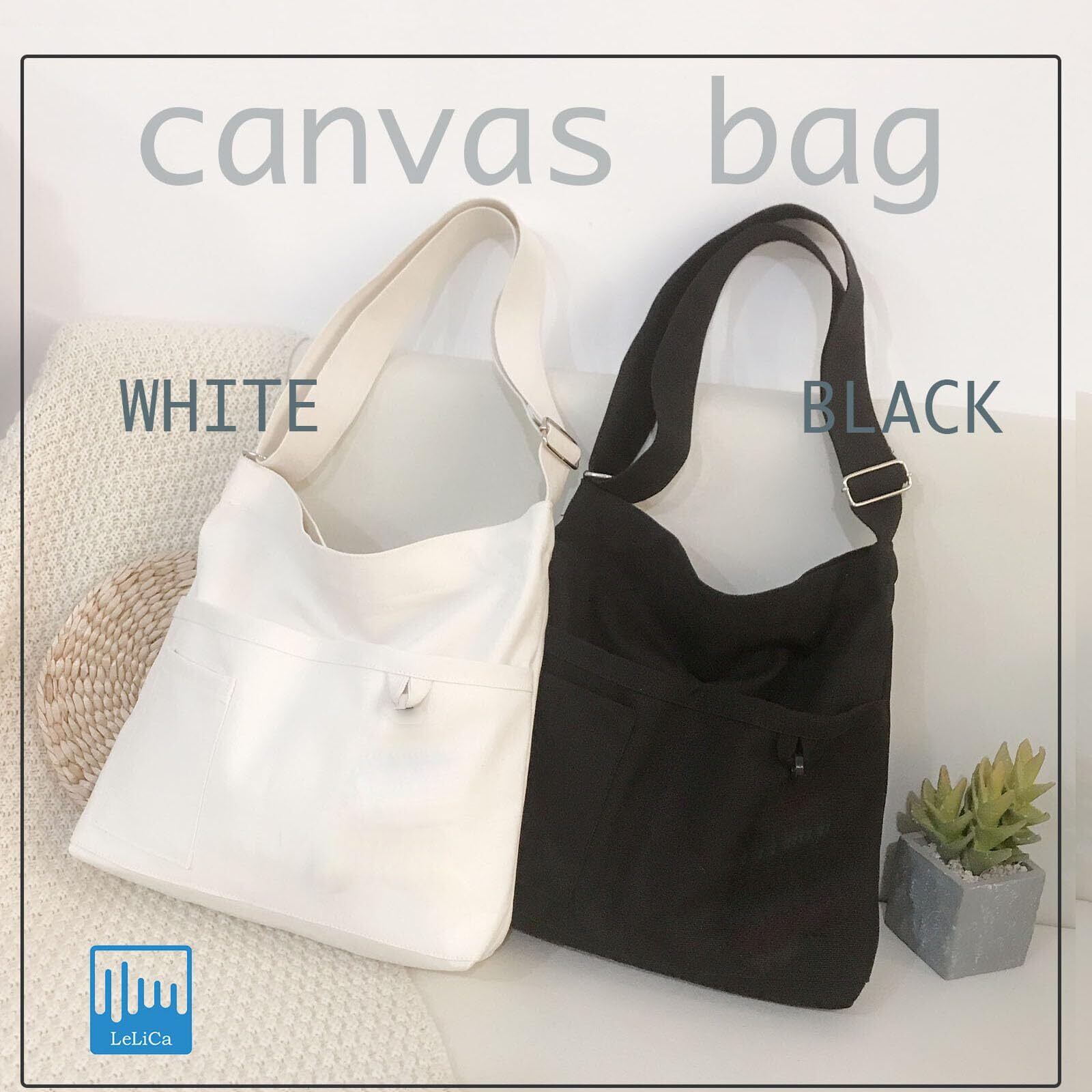 大容量の収納可能な帆布バッグバッグの開閉はファスナーなので物の出し入れも楽ちん!キャンバス素材は軽くてストレスフリーな生地で柔く、肩にかけた際も馴染みやすく、扱いやすさも魅力。男性から女性までユニセックスで使えます。