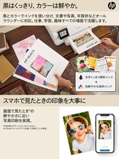 【Wi-Fi関連機能】接続の中断をなるべく減らすデュアルバンドWi-Fi対応。Wi-Fi Direct機能により、パソコン、スマートフォン、またはタブレットを直接接続し、ワイヤレスで印刷することができます。<BR> 高い生産性を実現するHP Smart アプリの、HP Smart Advanceに対応。スマホを使ったモバイルファクスの送信・複数アイテムスキャン・書籍スキャン(自動補正対応)・テキスト