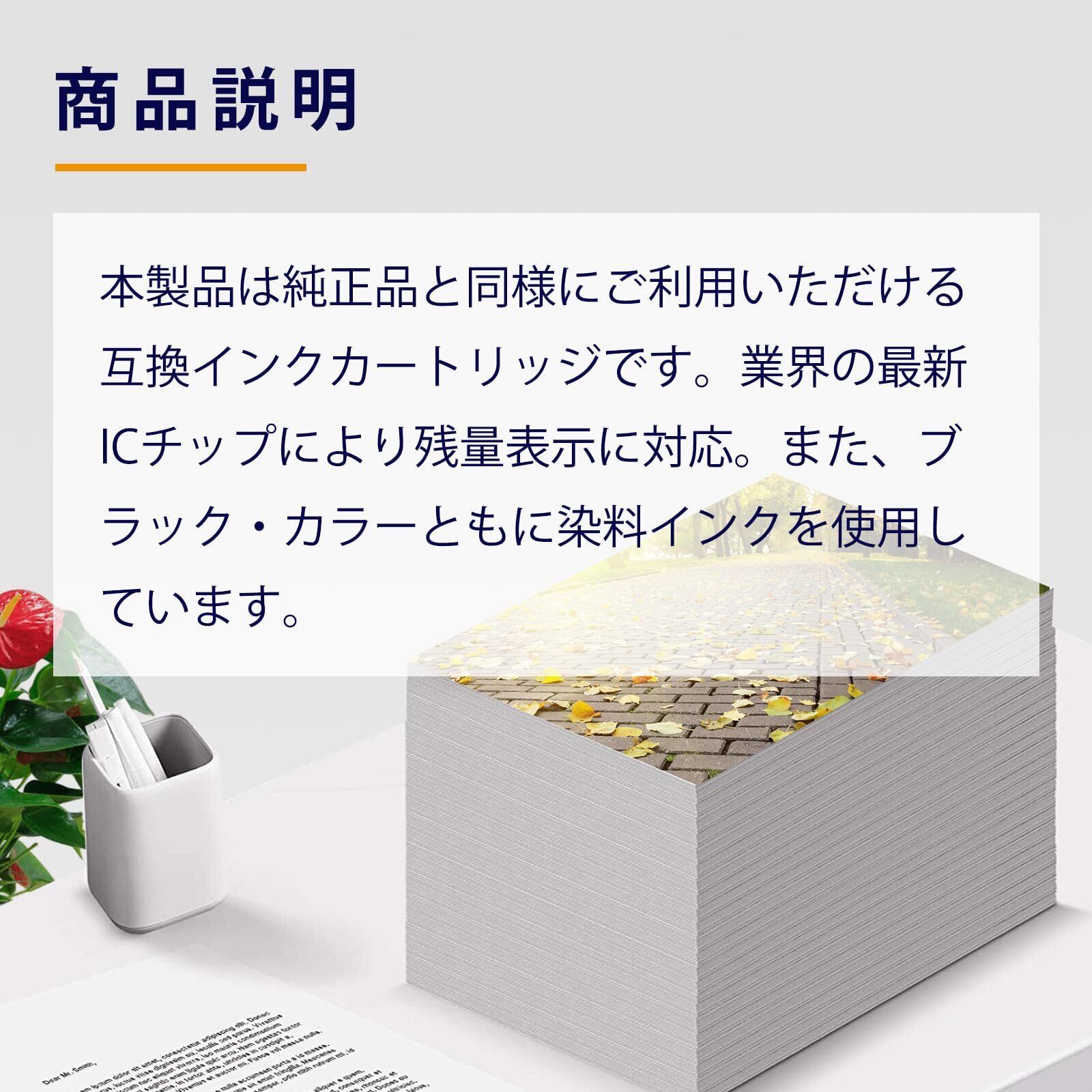 【商品説明】本製品は純正品と同様にご利用いただける互換インクカートリッジです。業界の最新ICチップにより残量表示に対応。また、ブラック・カラーともに染料インクを使用しています。
