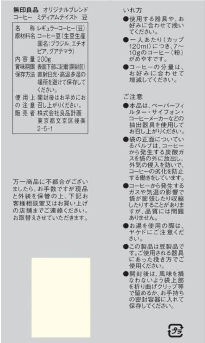 無印良品 オリジナルブレンドコーヒー豆 ミディアムテイスト 200g 83782061