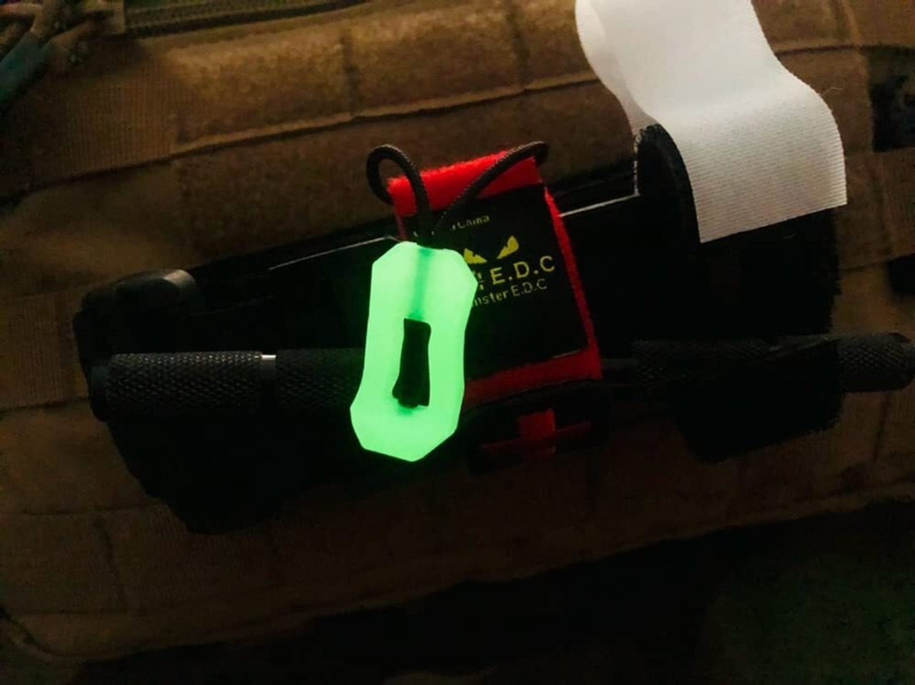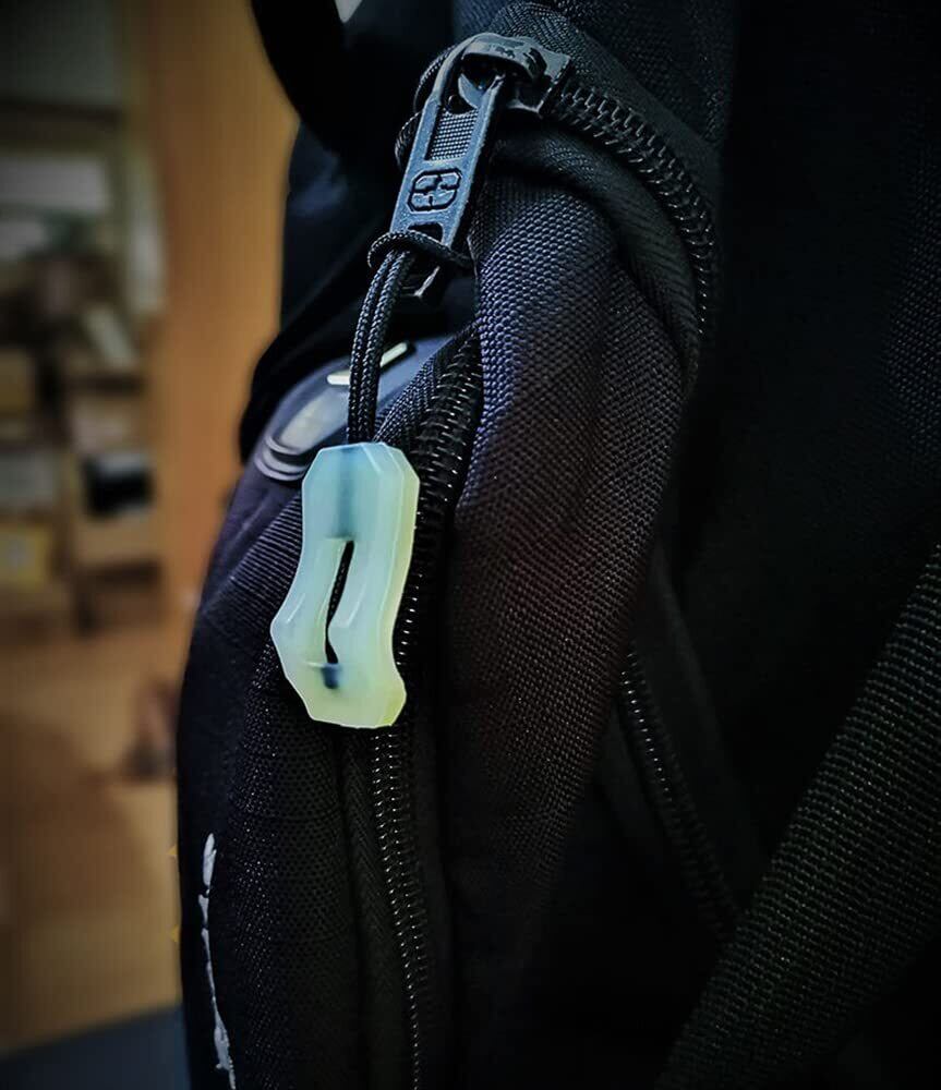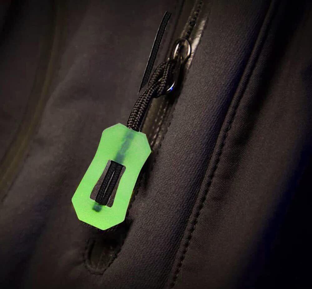 【蓄光ジッパータブ】デイライトで充電することにより、夜や暗い環境に緑色の光りを輝きます。暗闇の中によりやすく識別できます。