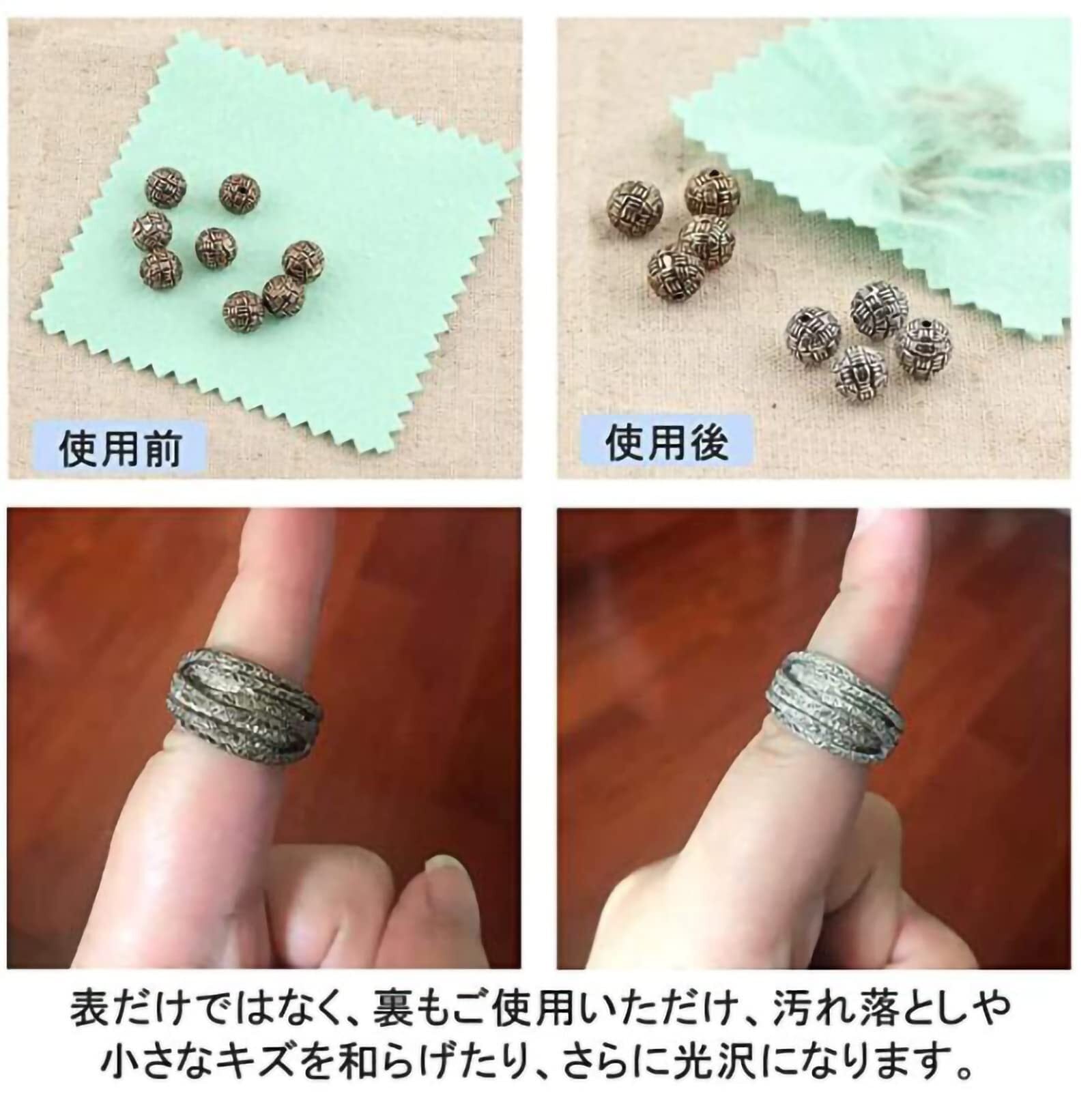 5.再利用可能:ソフトでしなやかな肌ざわりで繰り返しお使っても、効果は落ちません。注意:ブラックカラー・ピンクカラーのシルバー、メッキ・コーティング・燻し加工などの表面加工を施した銀製品には使用できません。なお、エメラルド・トルコ石・オパール・パール・コハク・サンゴ・貝及びイミテーションアクセサリー類は使用できません。