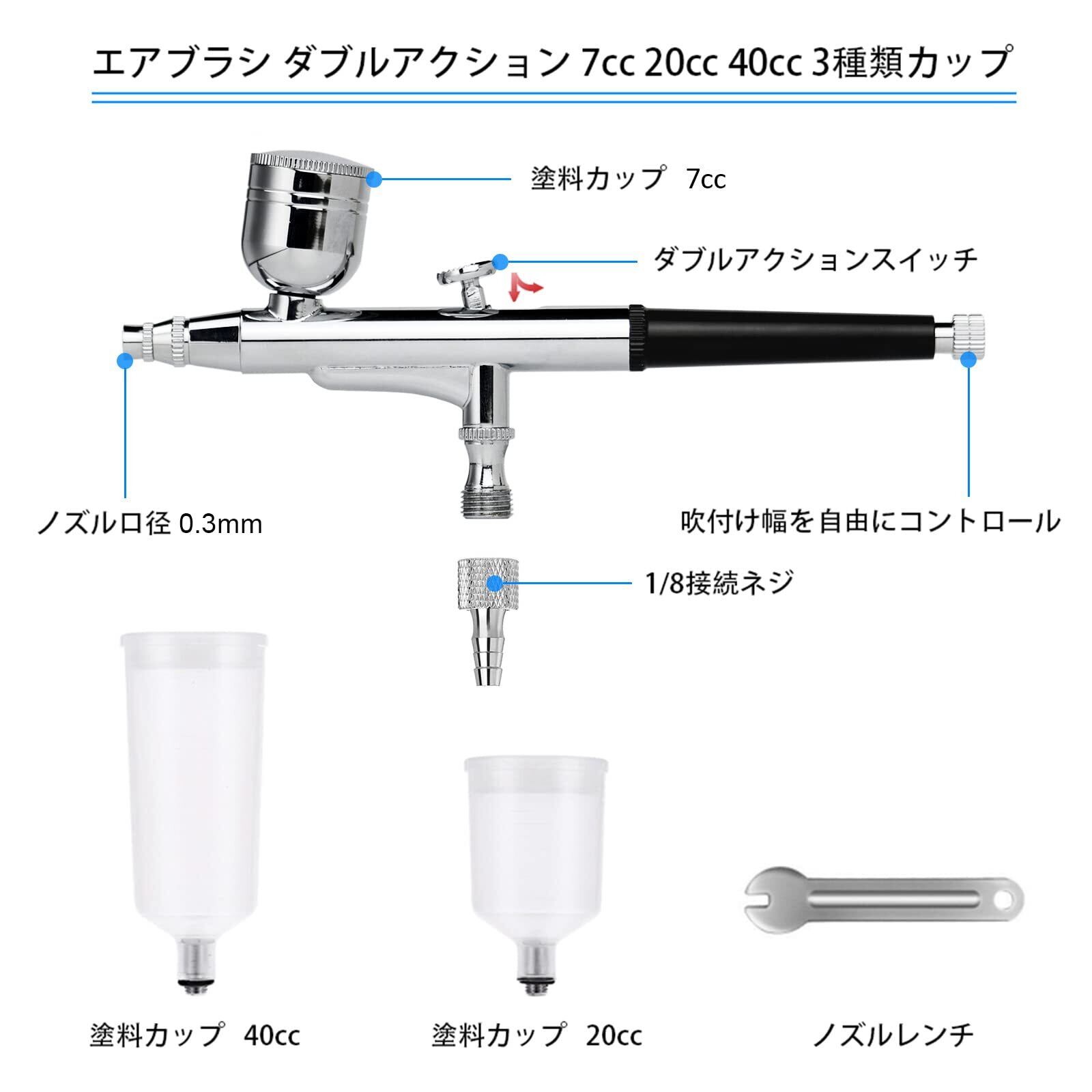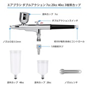 Ausuc エアブラシ ハンドピース ダブルアクション 口径0.3mm 7cc 20cc 40cc 3種類カップ プラモ 模型 塗装 アート クラフト