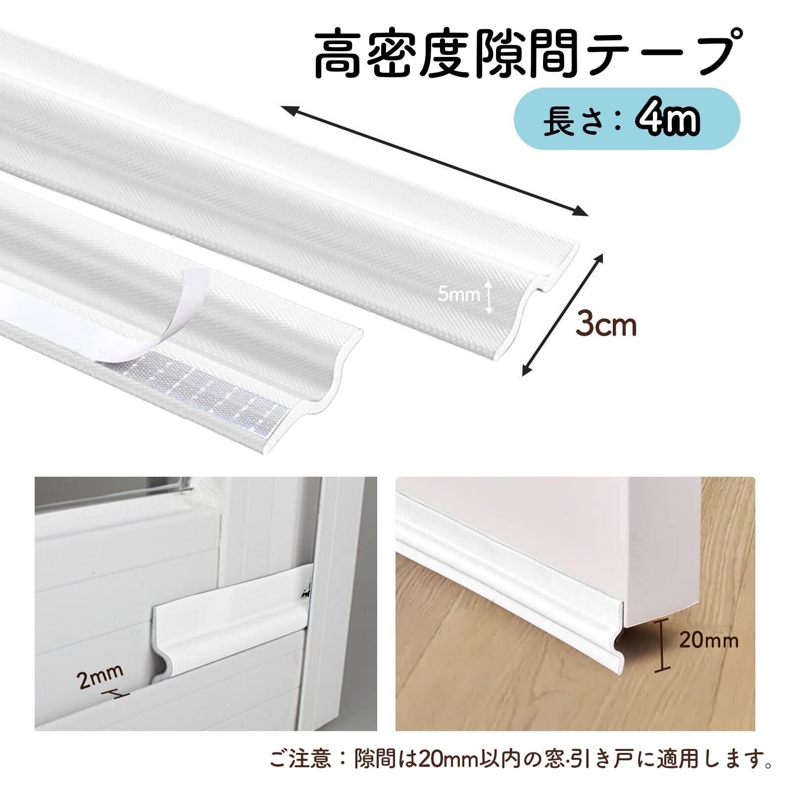 隙間テープ 窓 防音シート ホワイト すきまテープ 高耐久性 すきま風ストッパー 両面テープ付 窓防音テープ あるドア緩衝材ドラフトストッパー衝突 隙間風防止 隙間パッキン ドア下部シールテープ 冷気遮断 防虫 防雨 花粉 ホコリ防止(4m)Lasocy