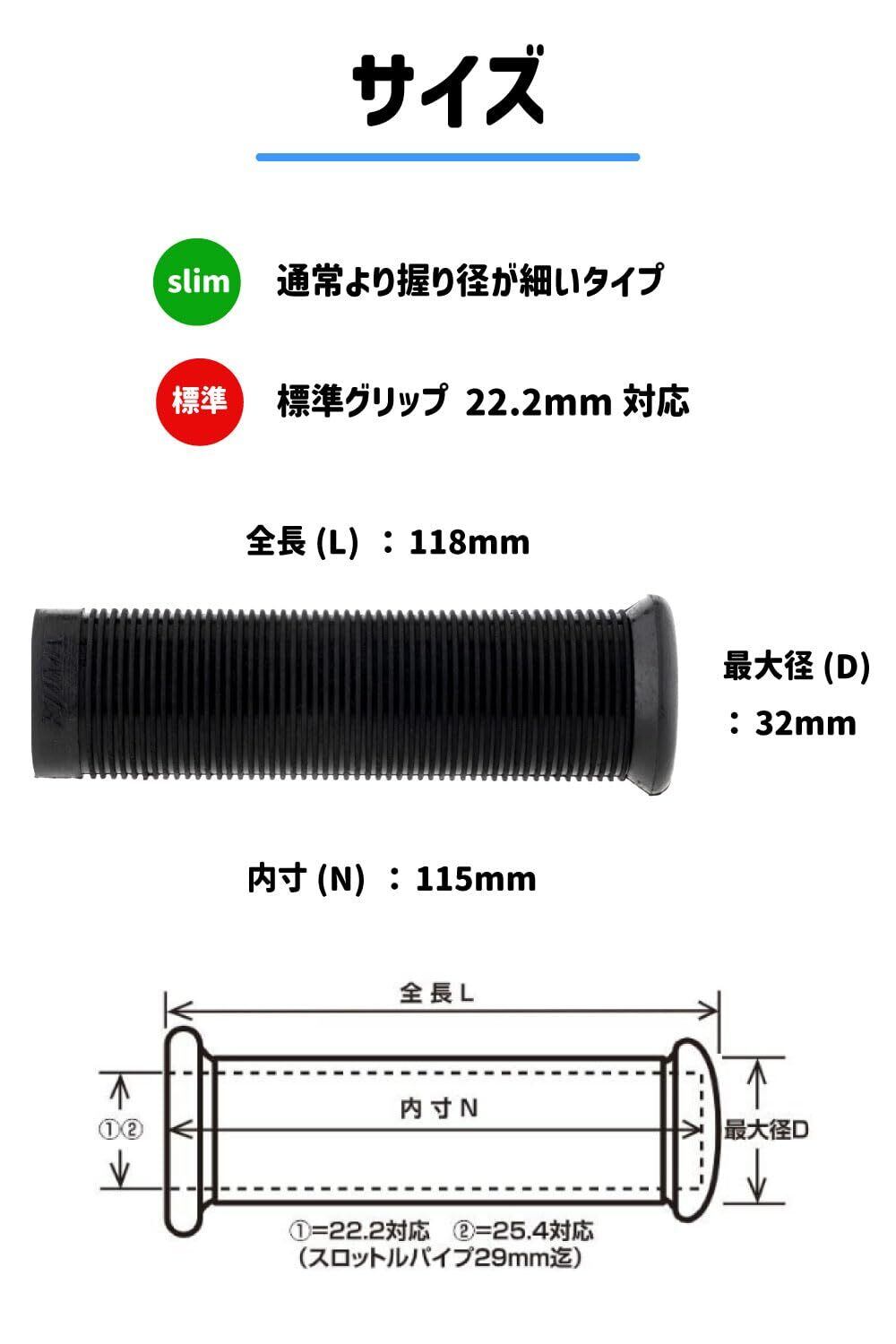 キジマ(Kijima) バイクパーツ グリップ スリムチョッパー ラバー製 118mm φ22.2mm 非貫通タイプ 汎用 ブラック 201-6423