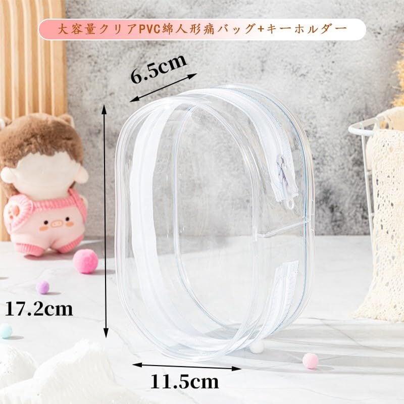 【仕様】大容量 クリア PVC 綿人形痛バッグ+キーホルダー、サイズ:17.2*11.5*6.5CM。