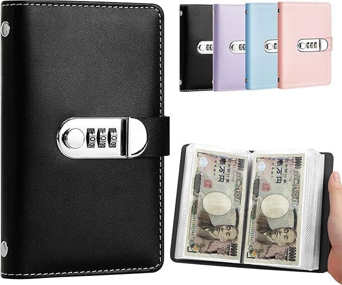 【大容量&整理ラクラク】100万円貯金達成可能な高収納貯金箱最大50ページまで収納可能なこの貯金箱。各ページにお札専用ポケットを2枚(計100枚収納)備え、1万円札なら100万円の貯金目標をしっかりサポートします。封筒タイプの仕切りポケットだから、紙幣の種類ごとに分けて整理でき、管理が驚くほど簡単に!